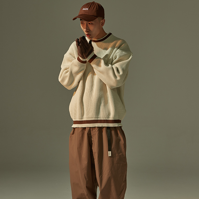 PIN SKTBS 22SS New Casual Versatile Contrast Color Sweater Japanese Pullover Commuter Knit Sweater Top Men