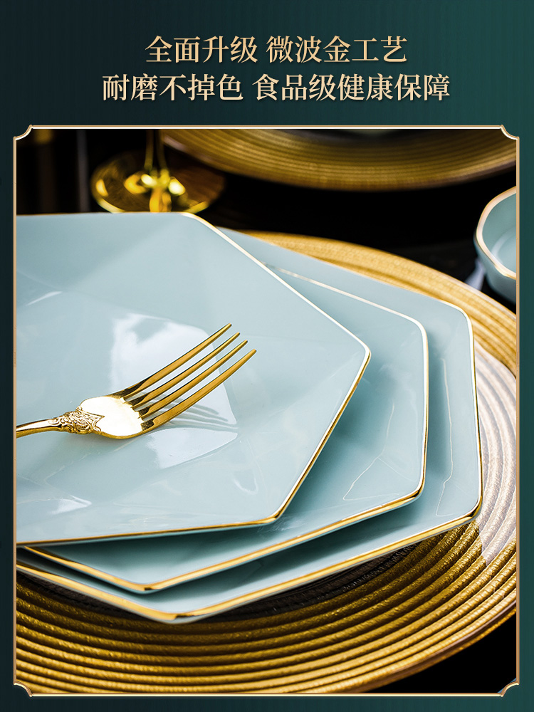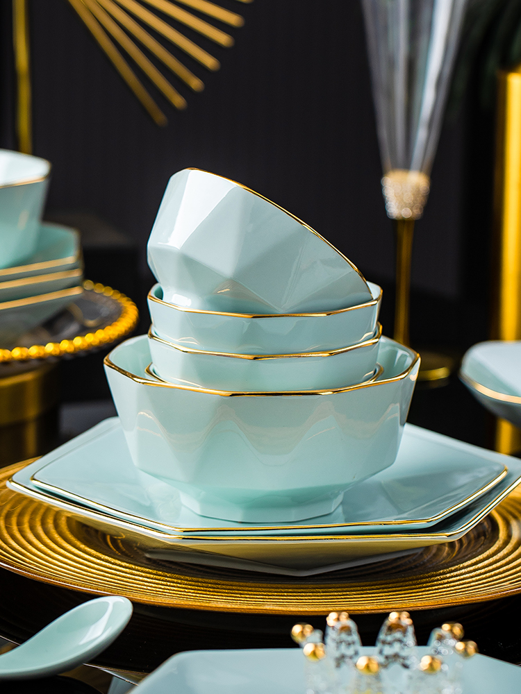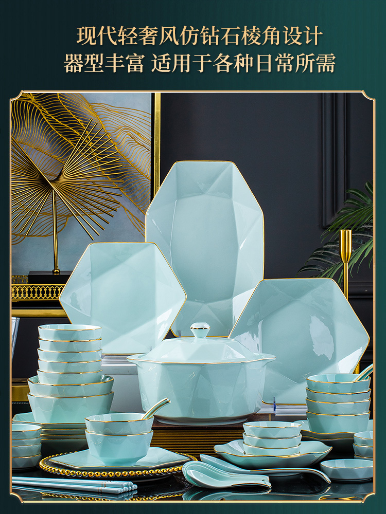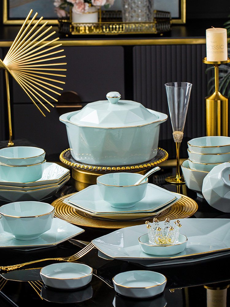 30 pieces of gold and blue diamonds for 6 people, with soup bowl (shaped plate) 40 pieces of gold and green diamonds for 8 people, 50 pieces of gold and green diamonds for 10 people, with diamond pot (shaped plate) 1