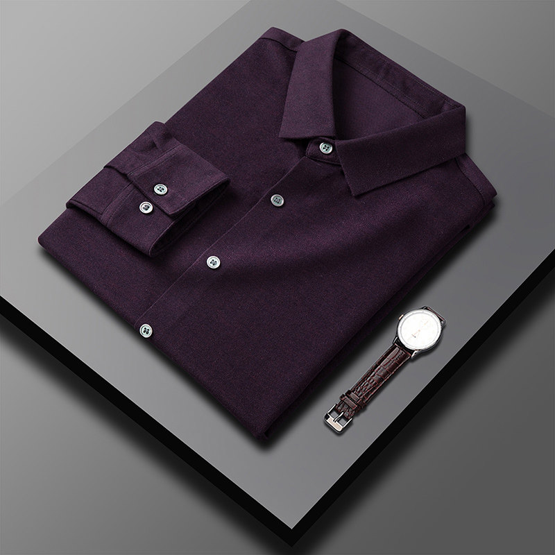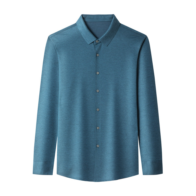Ordos cashmere shirt men's spring and autumn wool shirt middle-aged with mulberry silk long-sleeved casual top