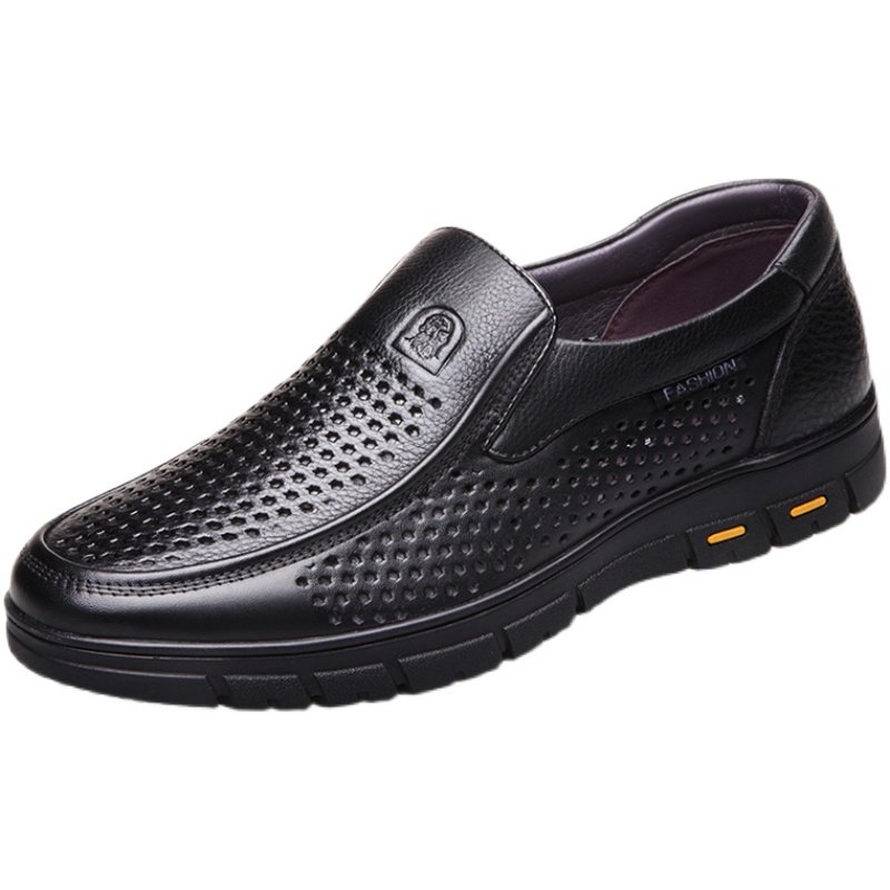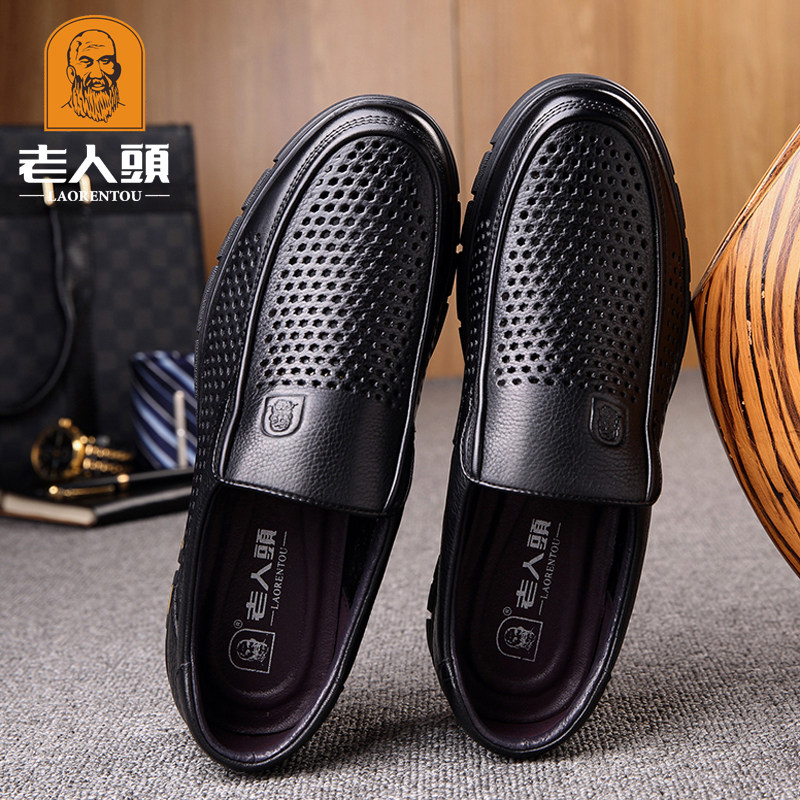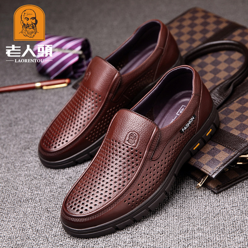Old man's head leather shoes men's summer new breathable hollowed-out sandals shoes genuine leather casual punching middle-aged dad leather sandals
