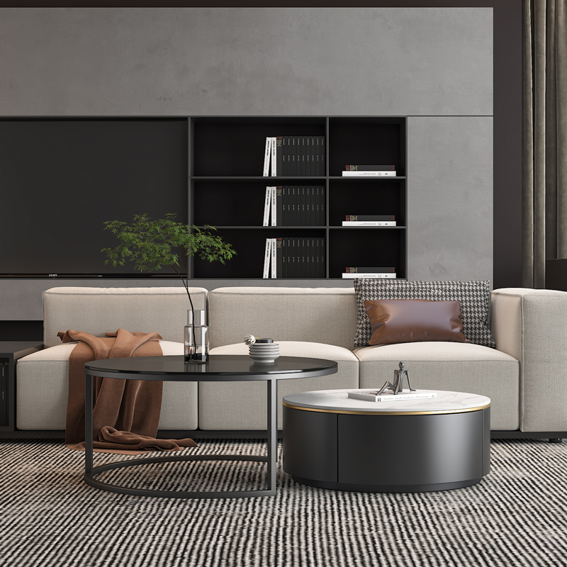 (Set) Slate Round Coffee Table (80 60)CM (Single) Slate Round Coffee Table 60CM
