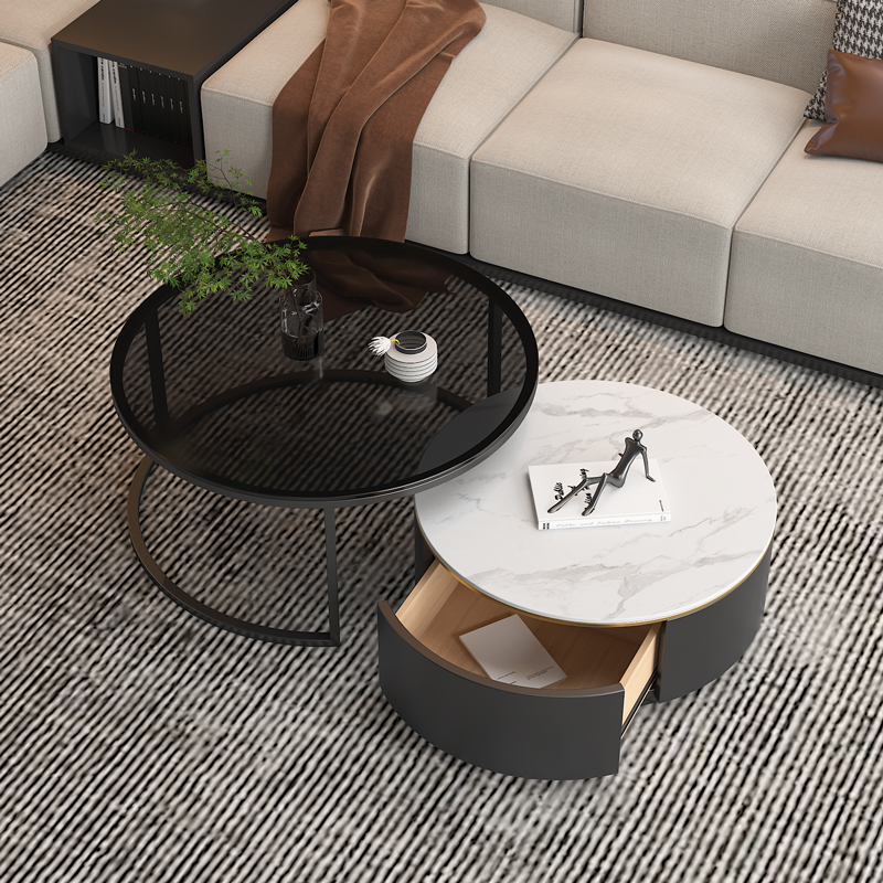 Glass coffee table living room home small apartment light luxury modern minimalist slate table round tea table home small tea table