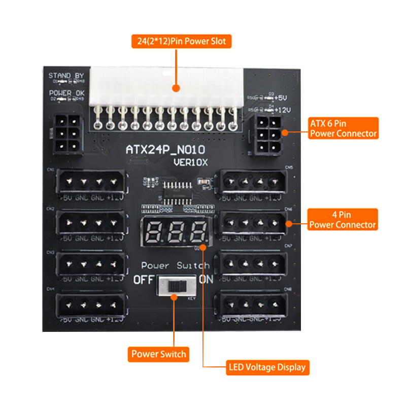 Jimier Power ATX 24P turn 8 mouths Big 4P 2 openings 6P ATX Power supply 24P Transfer boards Go Big 4p and 6p