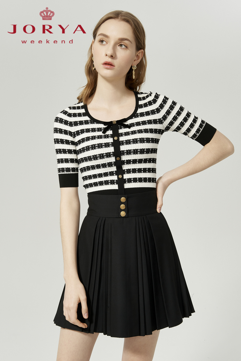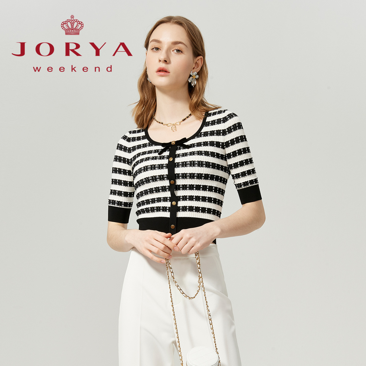 Zhuoja over the weekend 2022 spring and summer new sweet and round neckline striking striated dress with 50% sleeves-knitted sweatshirt EJWCAQ15