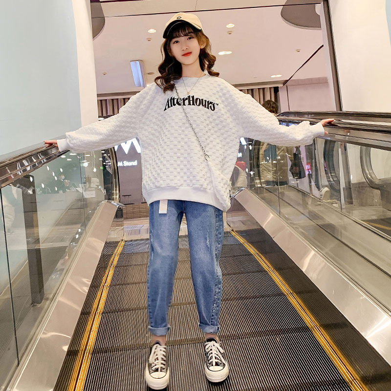 Children's clothing girls spring sweater thin section 2022 new western style middle and big children's net red pullover spring and autumn girl tops