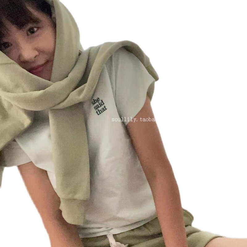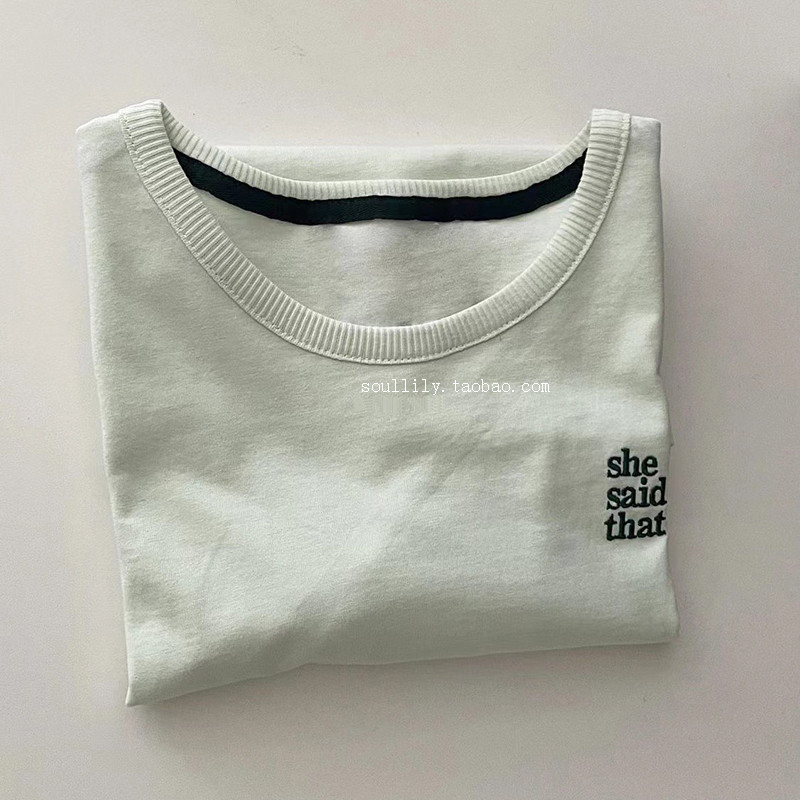 South Korea she said that cotton 100% white obedient simple embroidery short-sleeved t-shirt women 2022 summer tops