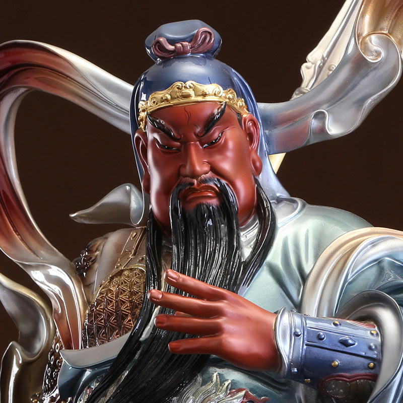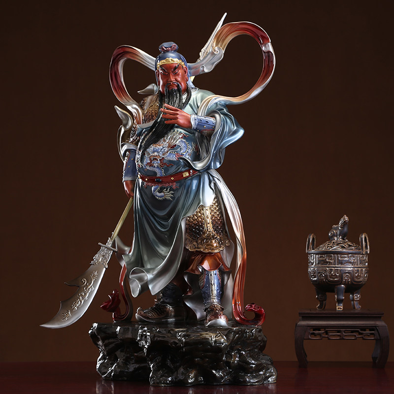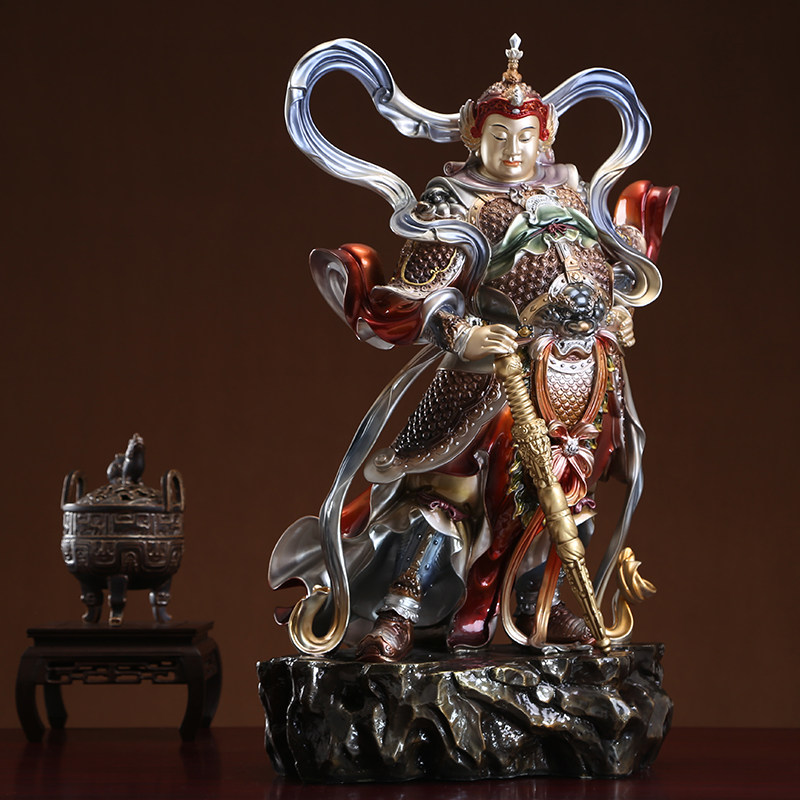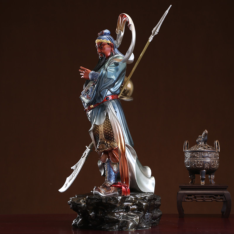 Taiwan painted streamer Guan Gong Buddha statue pure copper Galan Weida Bodhisattva ornaments Galan Buddha Bodhisattva left and right hair care statue