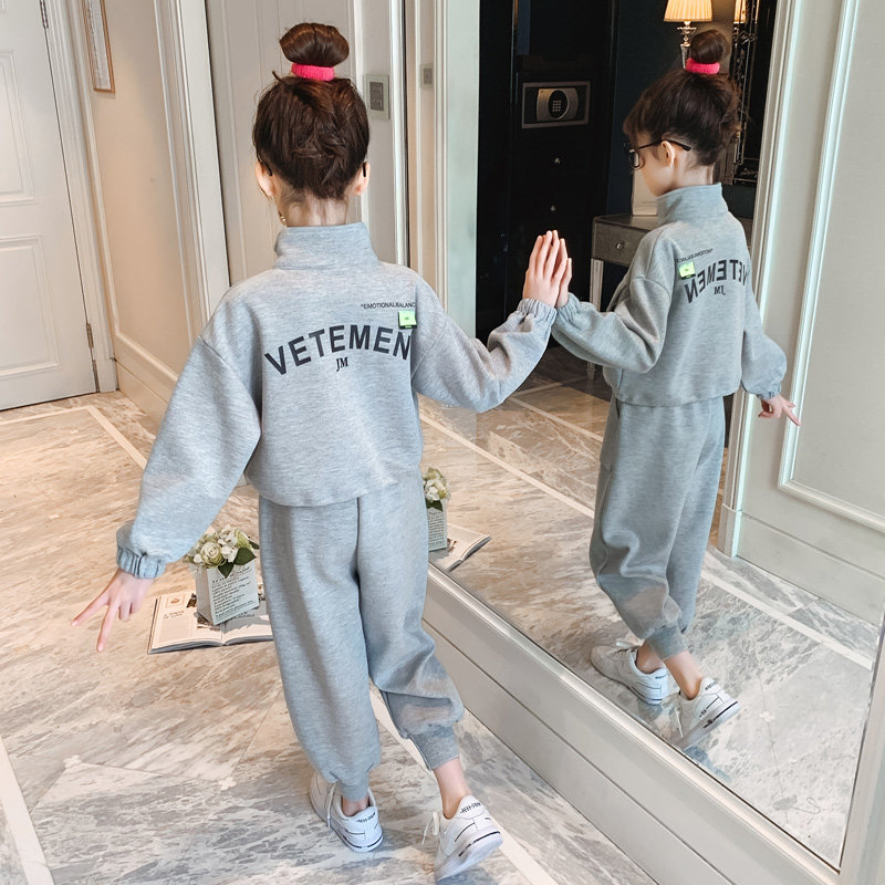 Girls Spring and Autumn Suit 2022 New Korean Version Medium and Large Children's Western-style Jacket Casual Sports Pants Net Red Two-piece Set