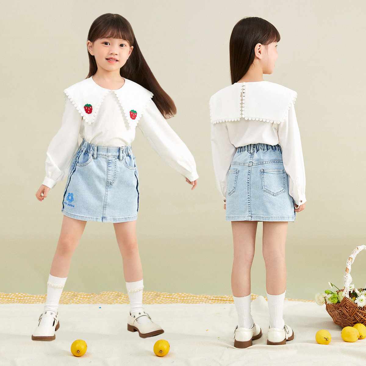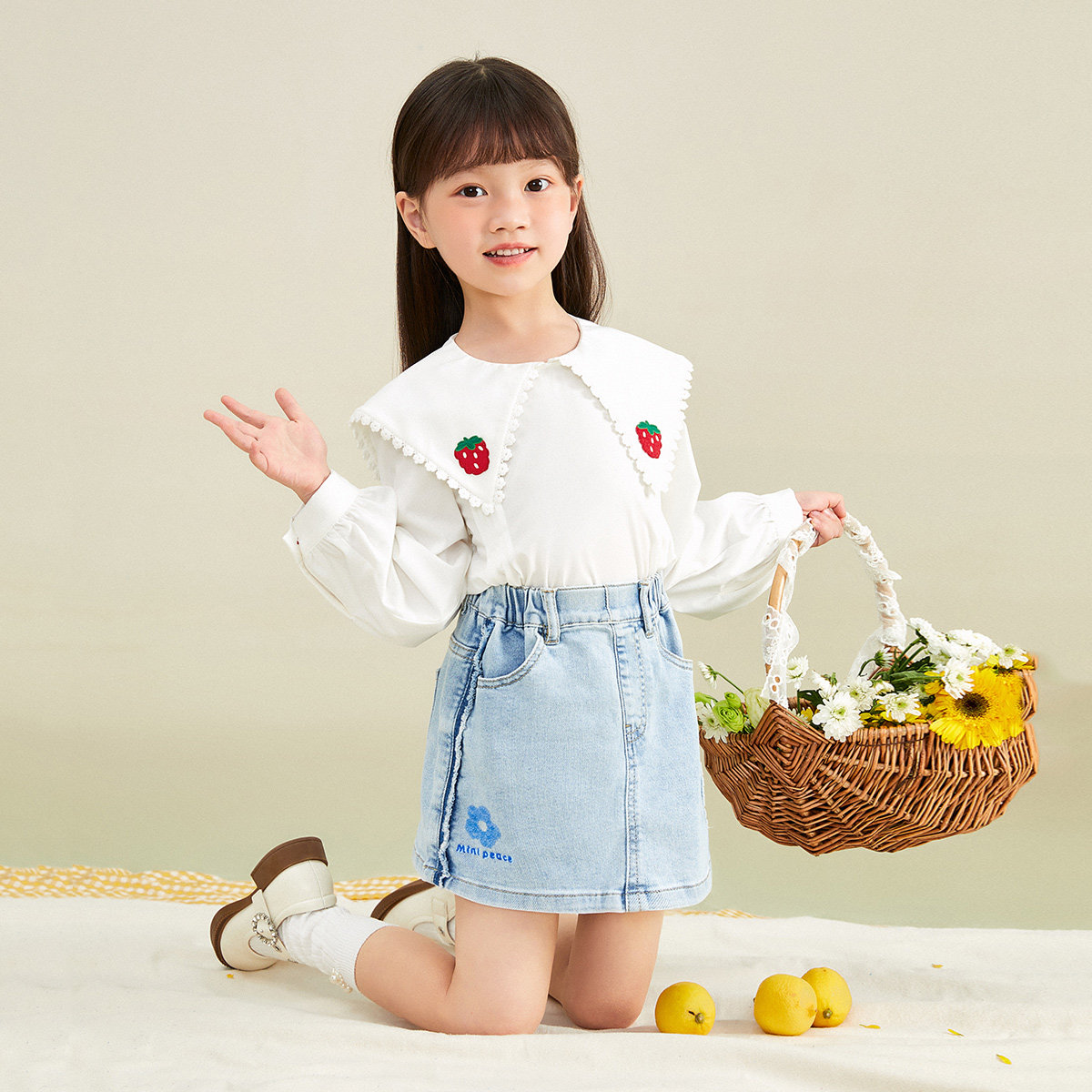 (Special Cabinet Identical) minipeace Taiping bird children dress Spring and autumn sweet and beautiful strawberry girl shirt F2CDC1338
