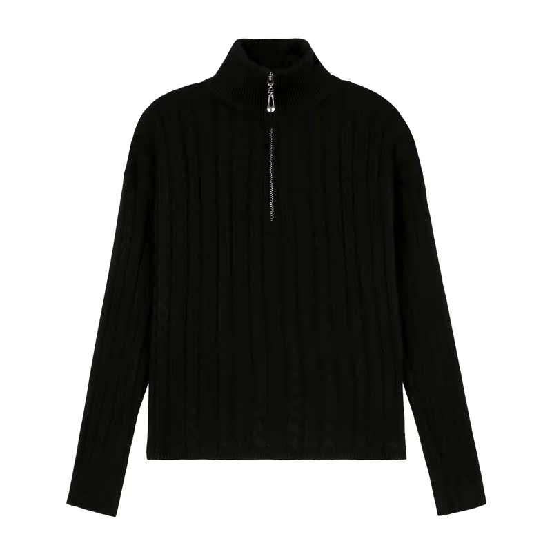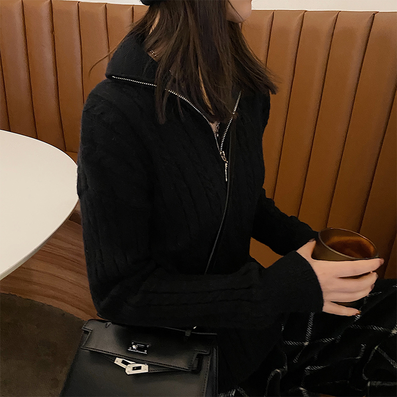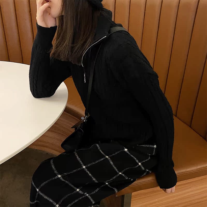 Small candied custom black turtlenecks semi-laced stitch cardio-hoodie women's spring and autumn temperament slim and short and numb sweater