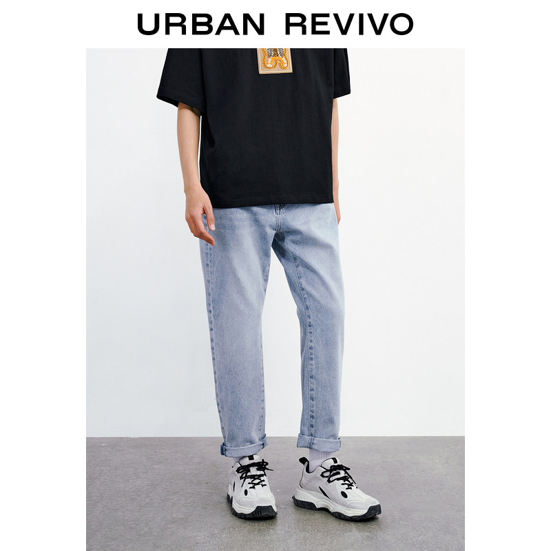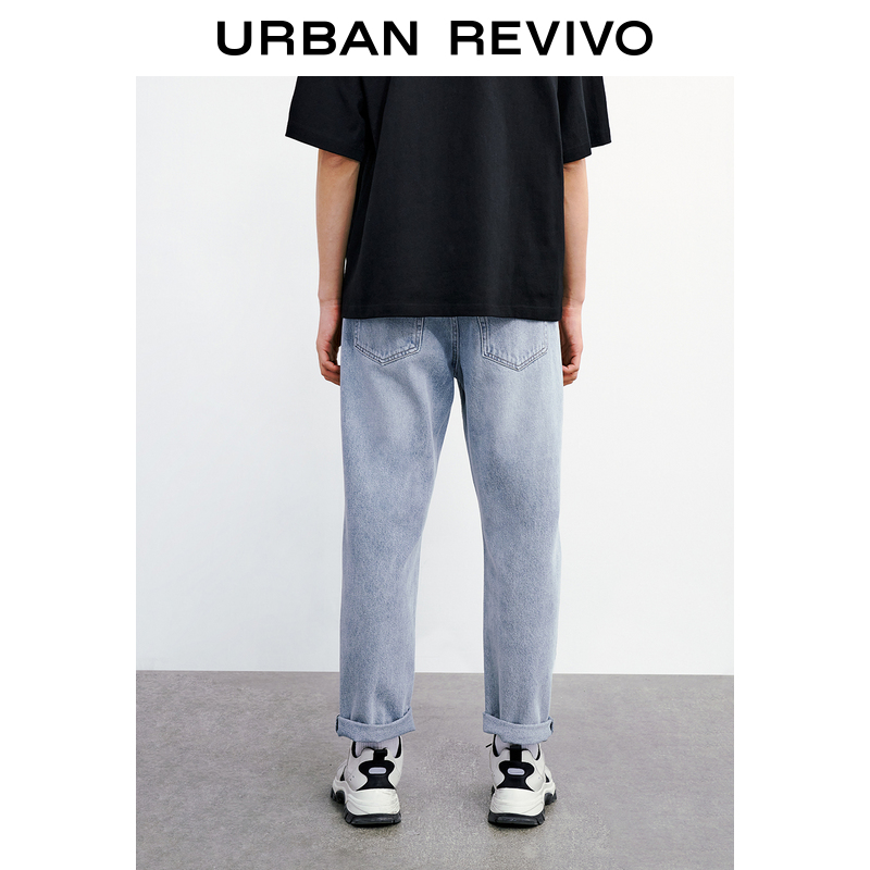 UR2022 Summer New Pint Men's Fashion Trends Wash Water Polish White Light Textured Jeans Long Pants MF07SBKN2004