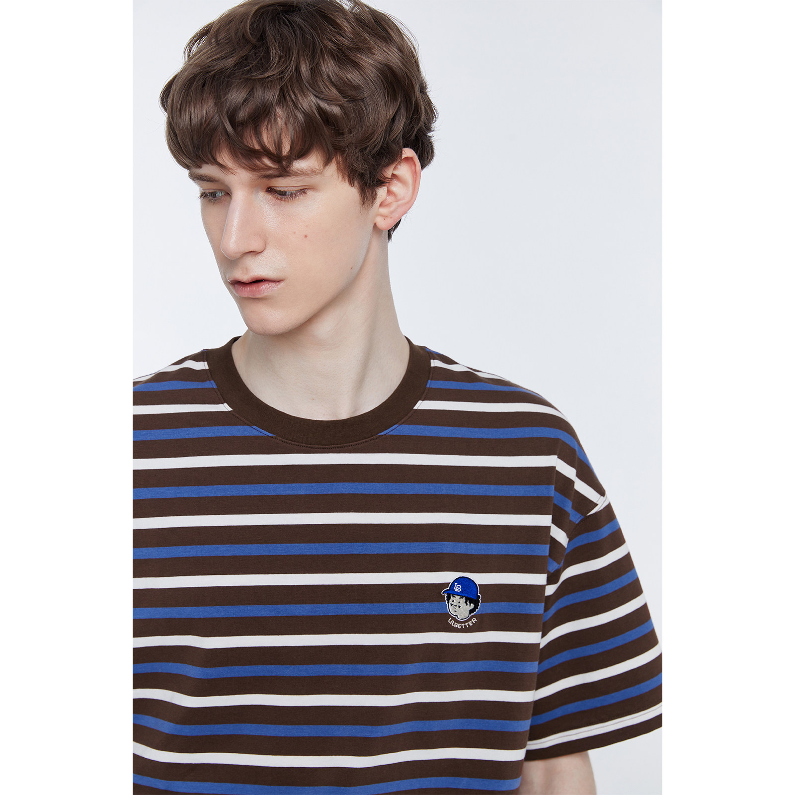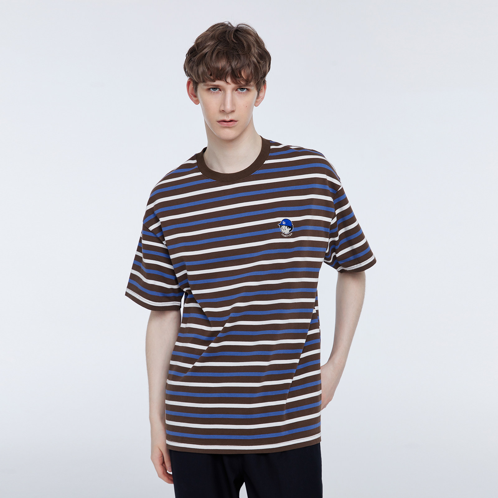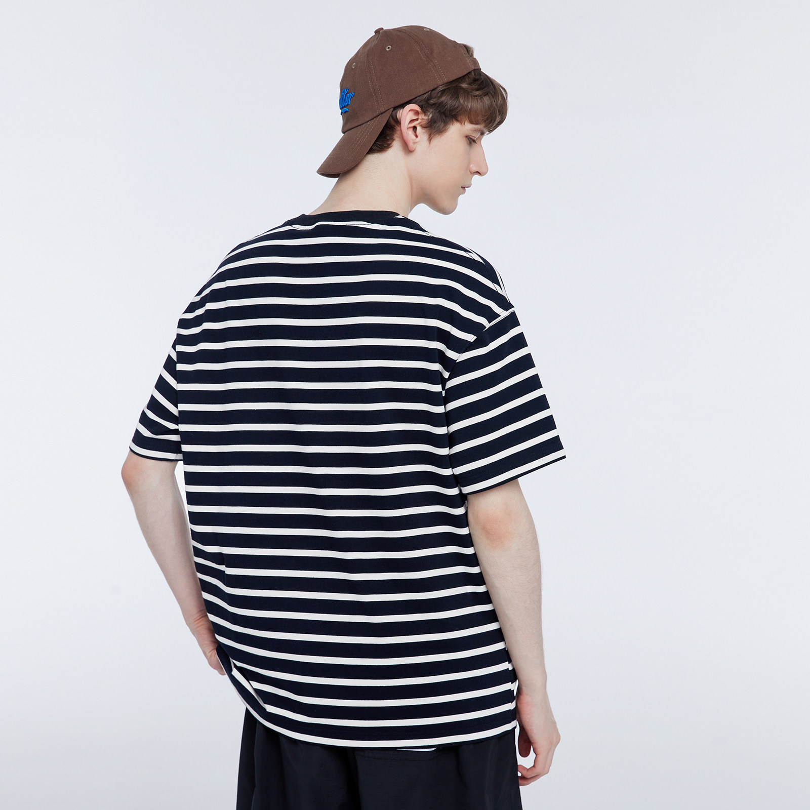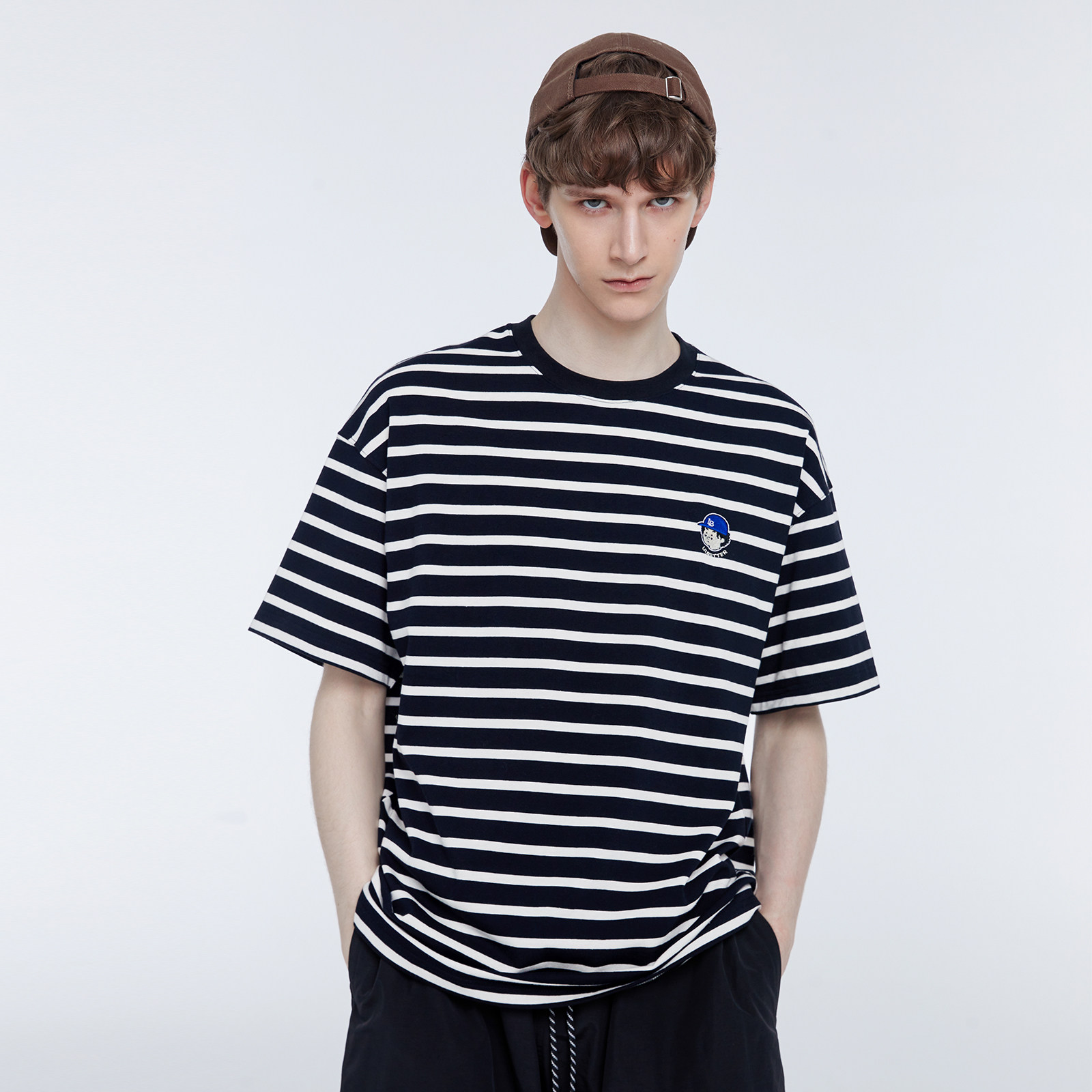Lilbetter men's striped short sleeve T-shirt pure cotton Summer American retro T-shirt Men's wave loose half sleeves