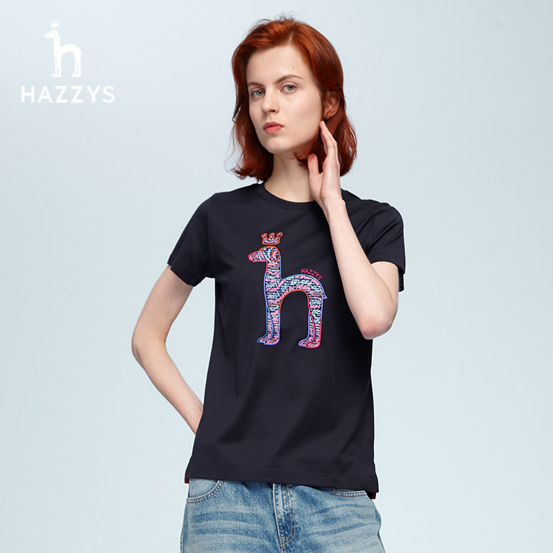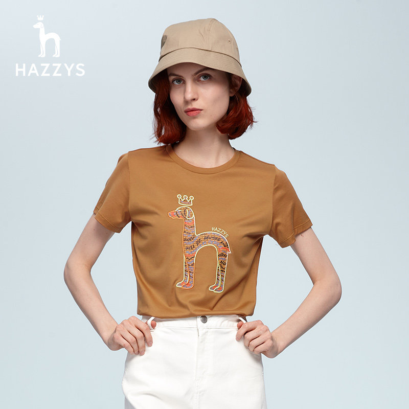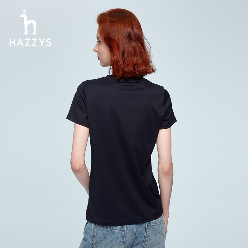 Hazzys Haggis cotton short-sleeved T-shirt white slim new summer women's round neck bottoming top