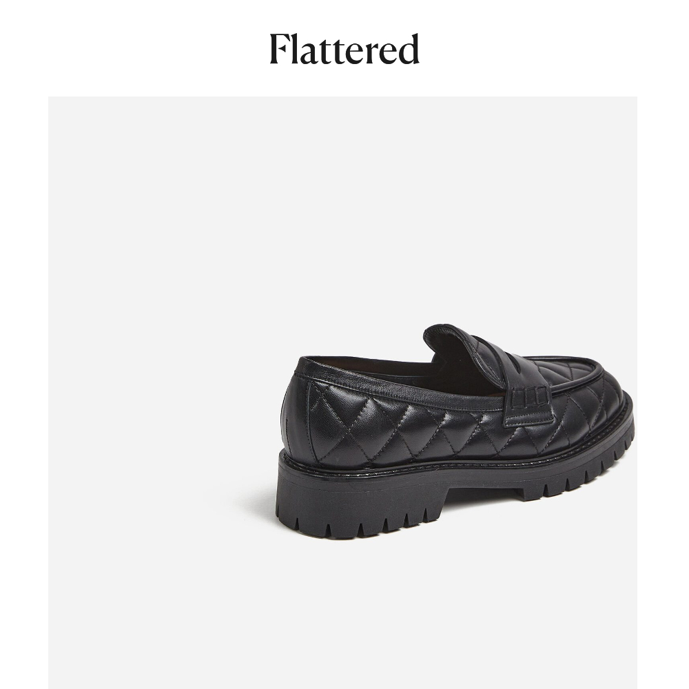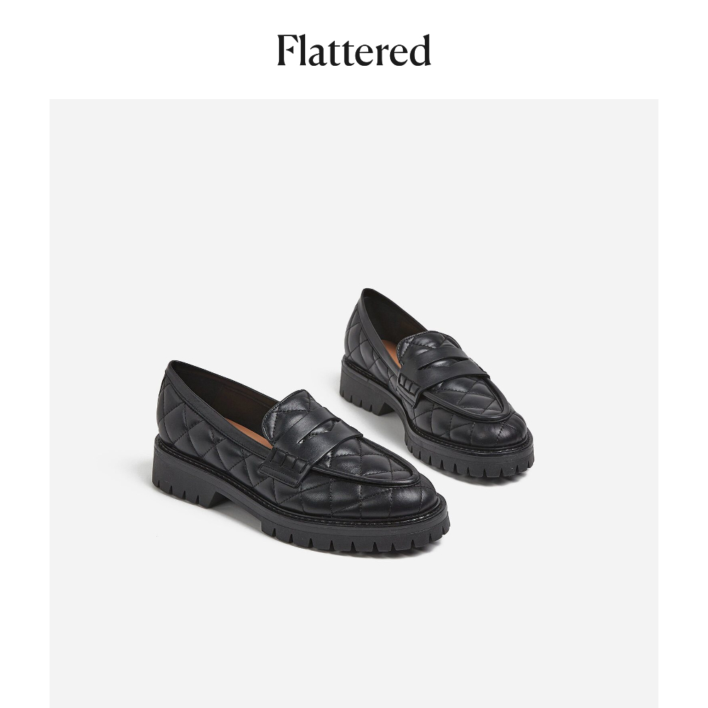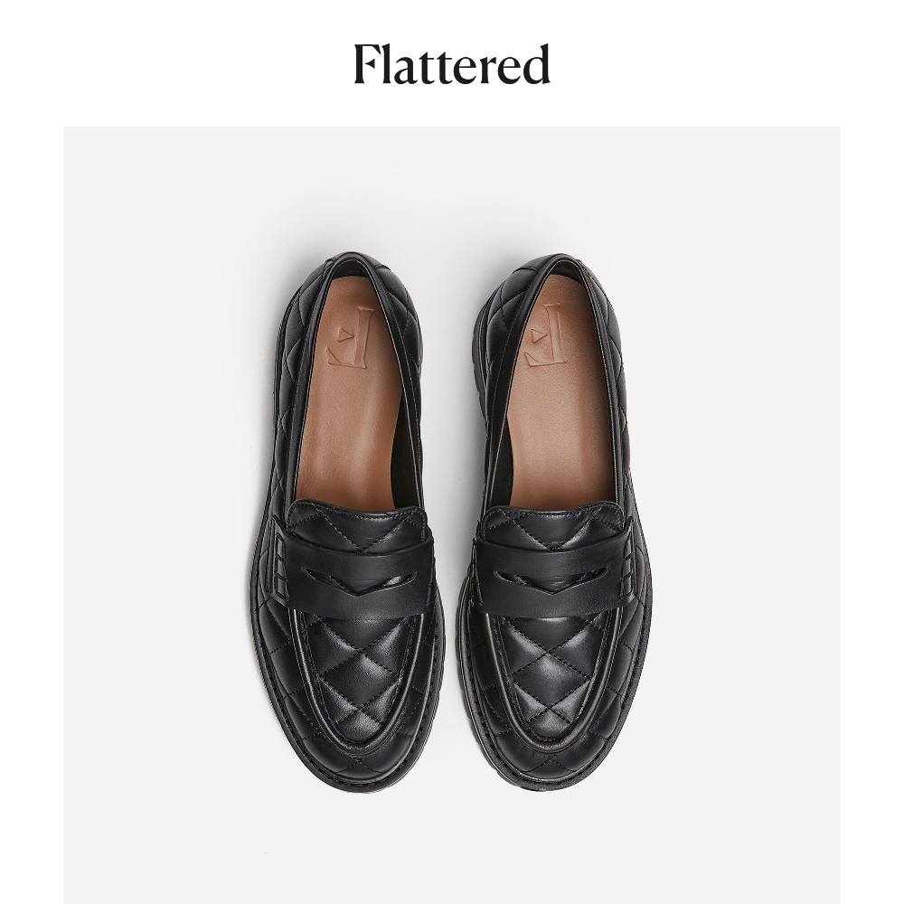 Flattered Signe Ladies Plaid Leather Loafers Black 2022 Summer New Style