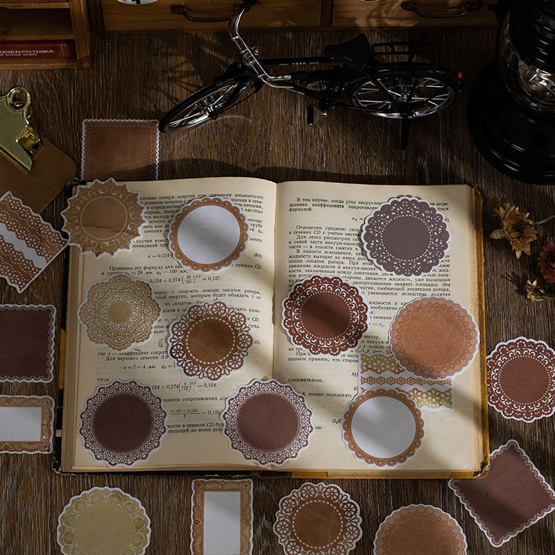 SMELL OF SULPHURIC ACID PAPER LACE STICKERS BAG OILEE POETRY CHAPTER RETRO CIRCLE BORDER HANDBILL DECORATION HIT BOTTOM BACKGROUND POST