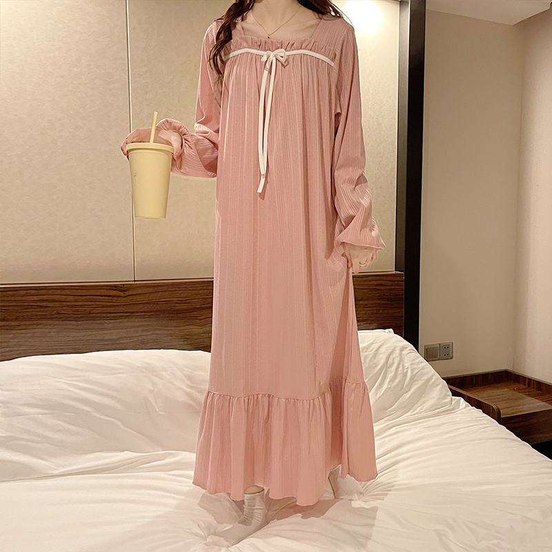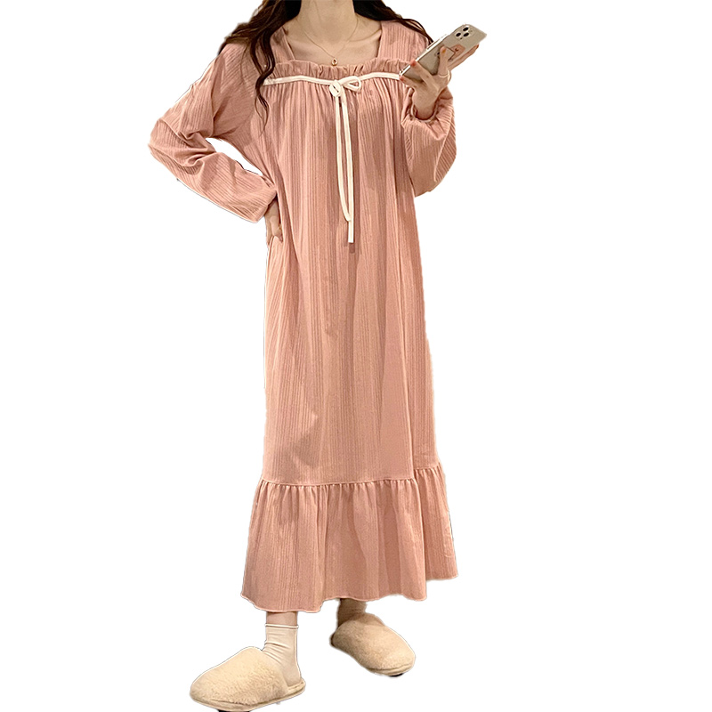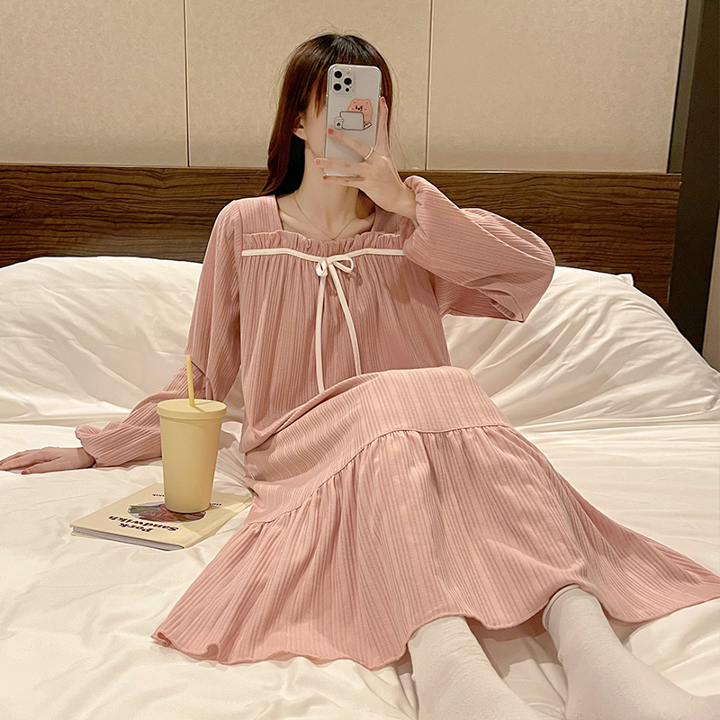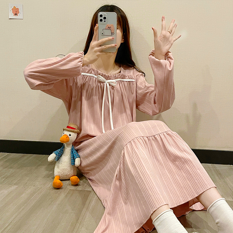 2022 new cotton pajamas dress women's spring autumn winter long-sleeved solid color nightdress home clothes can be worn outside