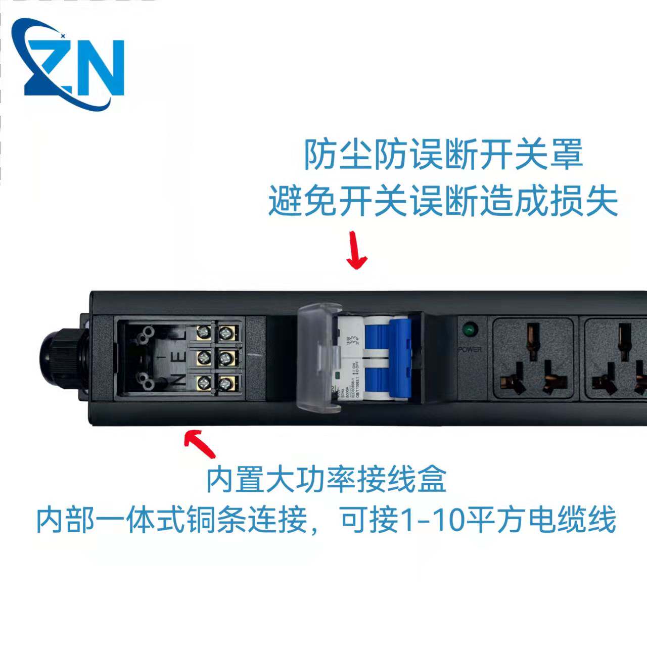 Hot-selling high-power row plug 8000W10000W63A circuit breaker heavy-duty three-phase rack 12-bit PDU socket