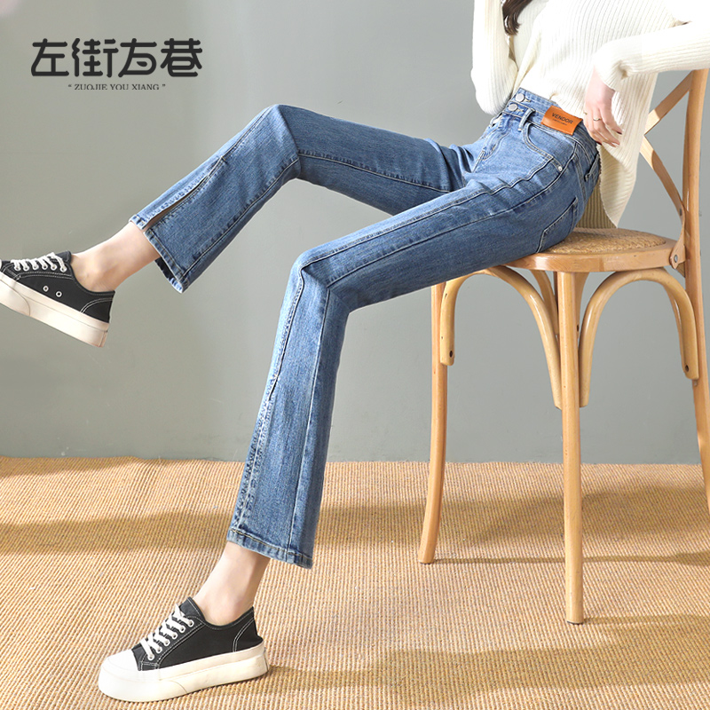 Micro Trumpeter Pants Woman High Waist Thin HORN PANTS 2022 NEW SUMMER STRAIGHT CYLINDER SLIM 90% OPEN FORK PANTS