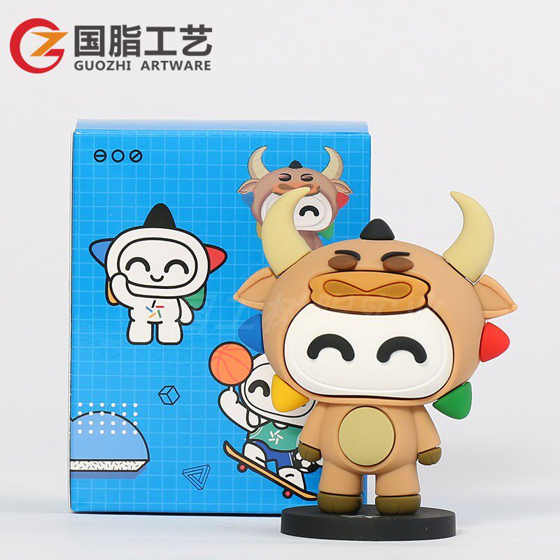 Cartoon Soft Glue Paparazzi model to figure out making enterprise mascot blind box Bull Doll Custom PVC Doll Pendulum