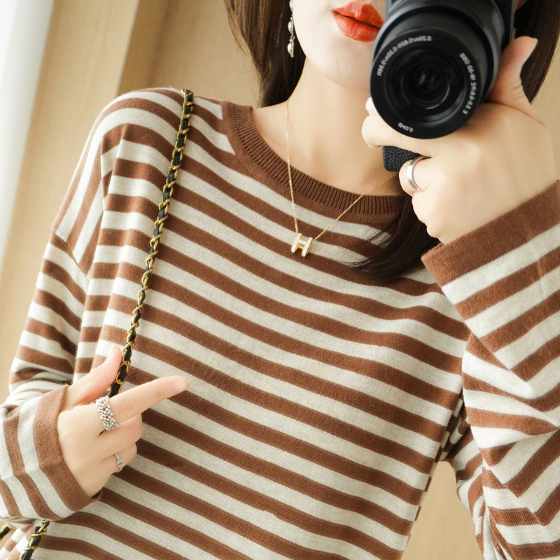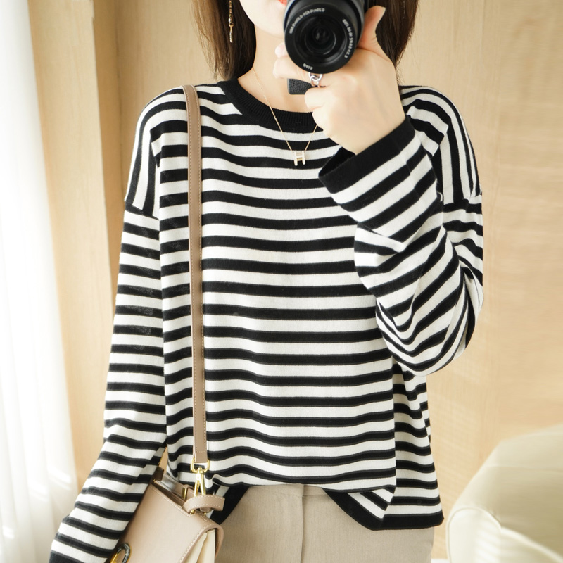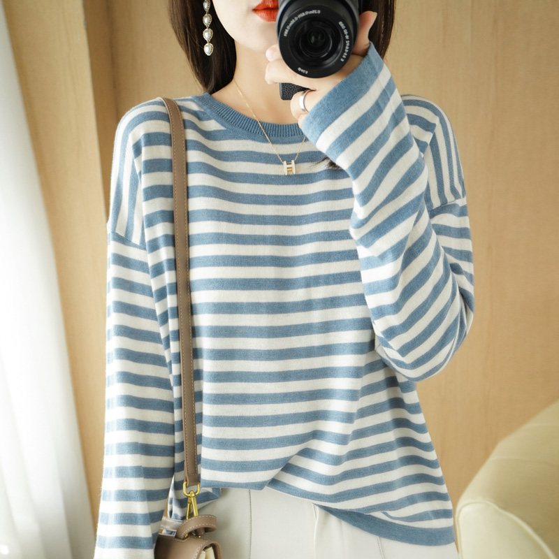 Striped Sheep Sweatshirt Woman Thin shaped round neckline headsweaters 2022 Spring new loose large size Sizes Collared Knit Undershirt