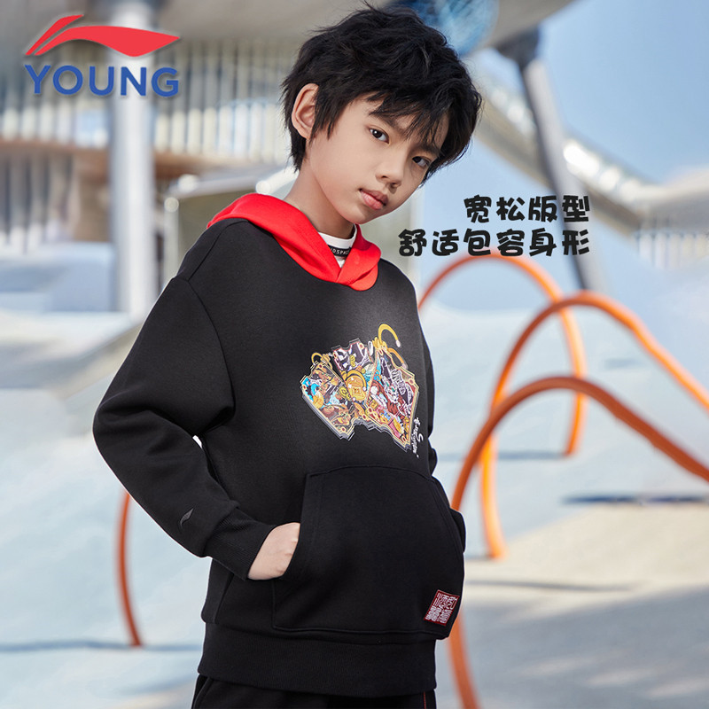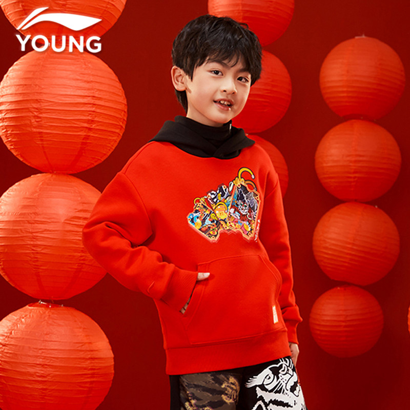Li Ning boy clothes 2022 new CUHK children like tiger add wing New Year round collar hat children sports casual thick cotton T