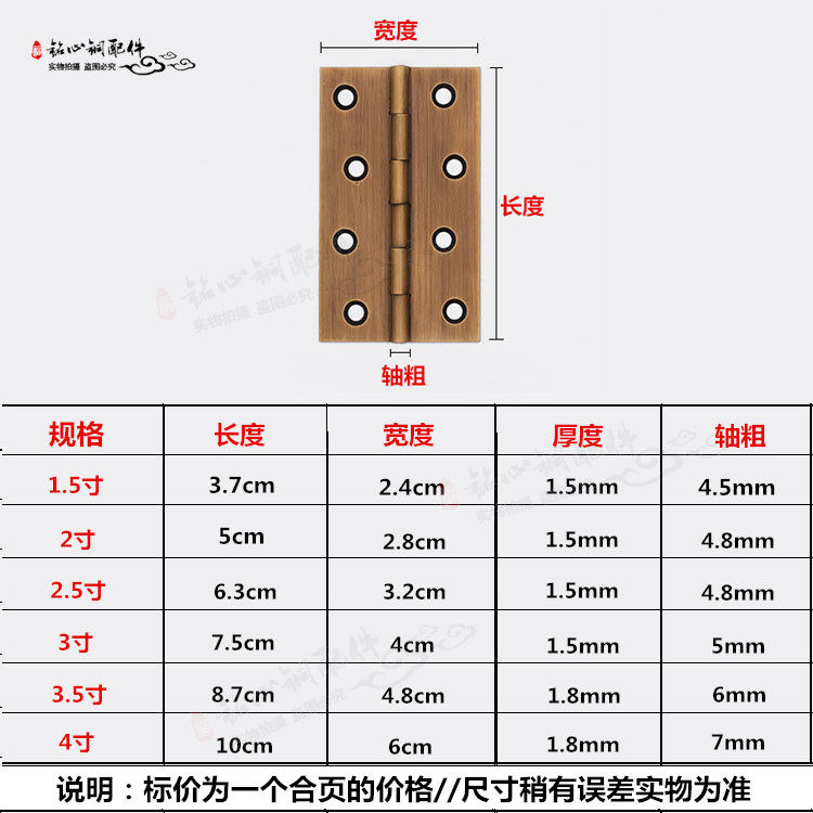 Chinese antique pure copper hinge wooden door concealed folding cabinet door screen fan thickened flat open brass hinge hinge