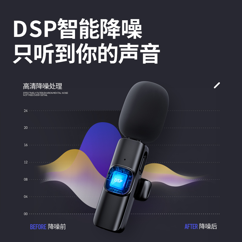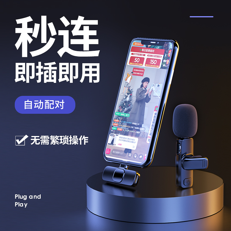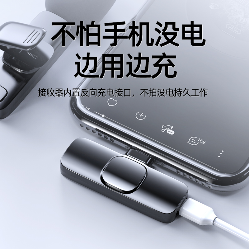 Wireless Microphone Collar Clip Type Recorder Noise Reduction Sound Recorder Recording Film Shake Sound Live Vlog One Drag Two Outdoor Covering Main Podcast Microphone Apply Apple Android Small Bee Dubbing