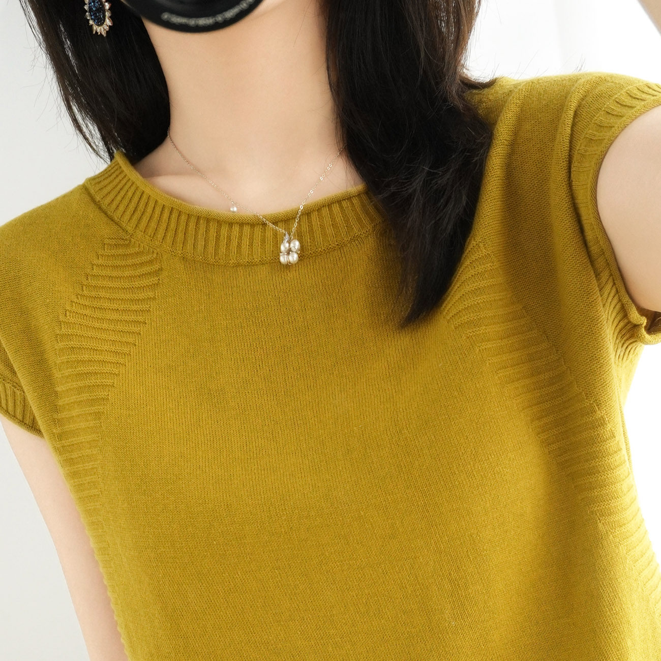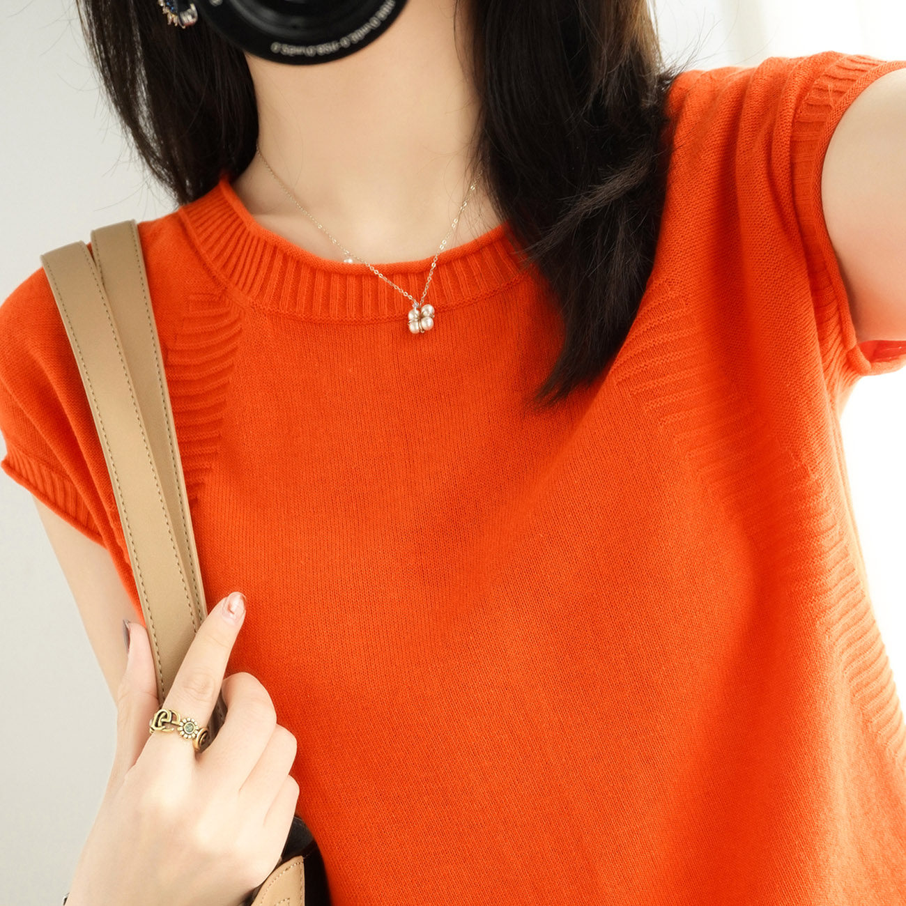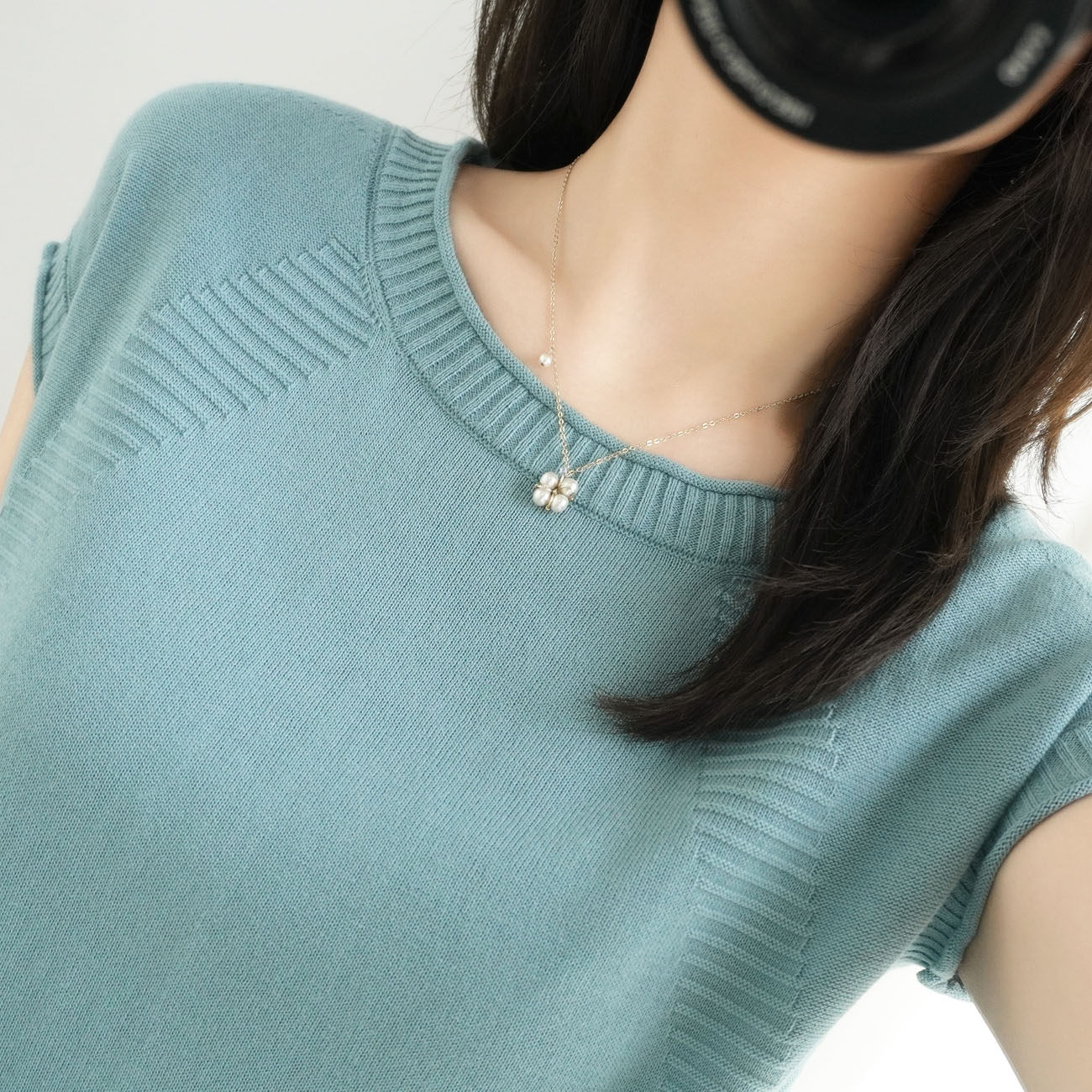 Knitted sweatshirt woman short sleeve round collar blouses half sleeve undershirt sweater cotton linen loose minimalist sleeve head for spring and summer