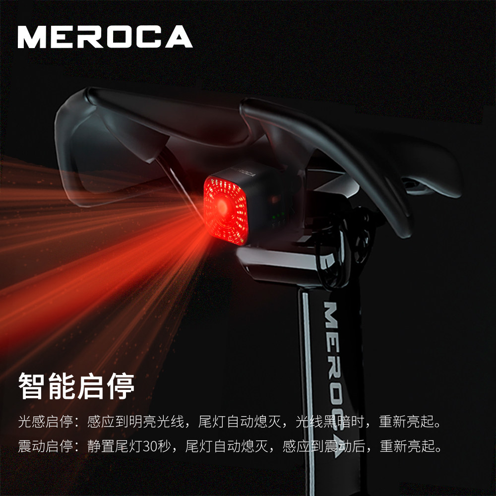 MEROCA bicycle smart taillight brake induction night riding warning light road bike mountain bike flashing riding light