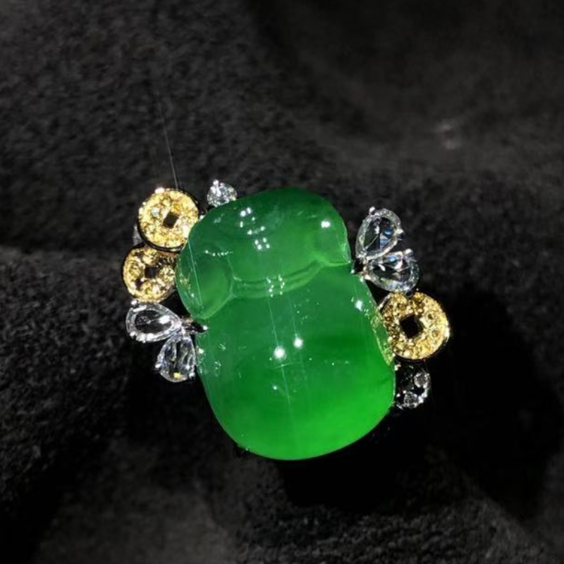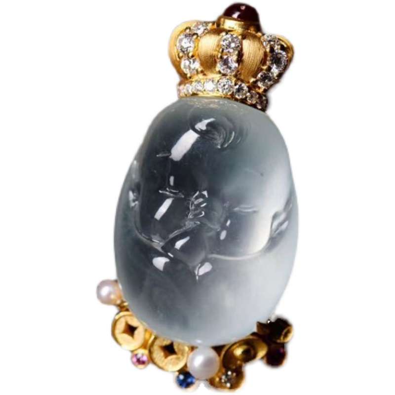 High-end ice jade necklace ring pendant jewelry jade 18k gold inlaid jade private custom live room special shooting