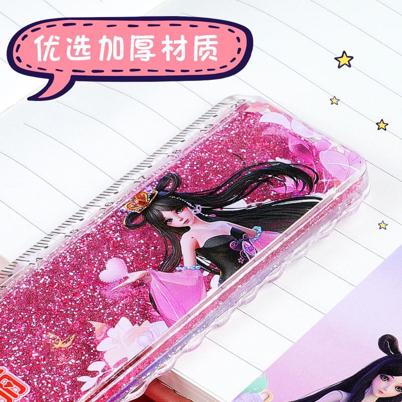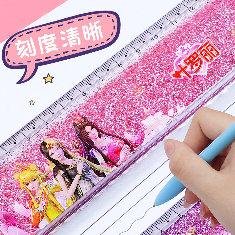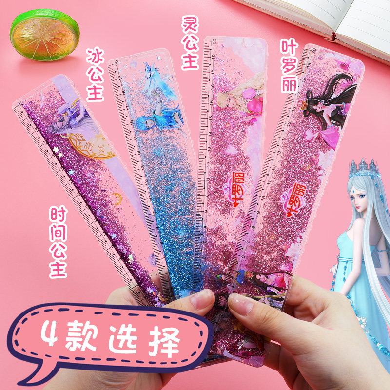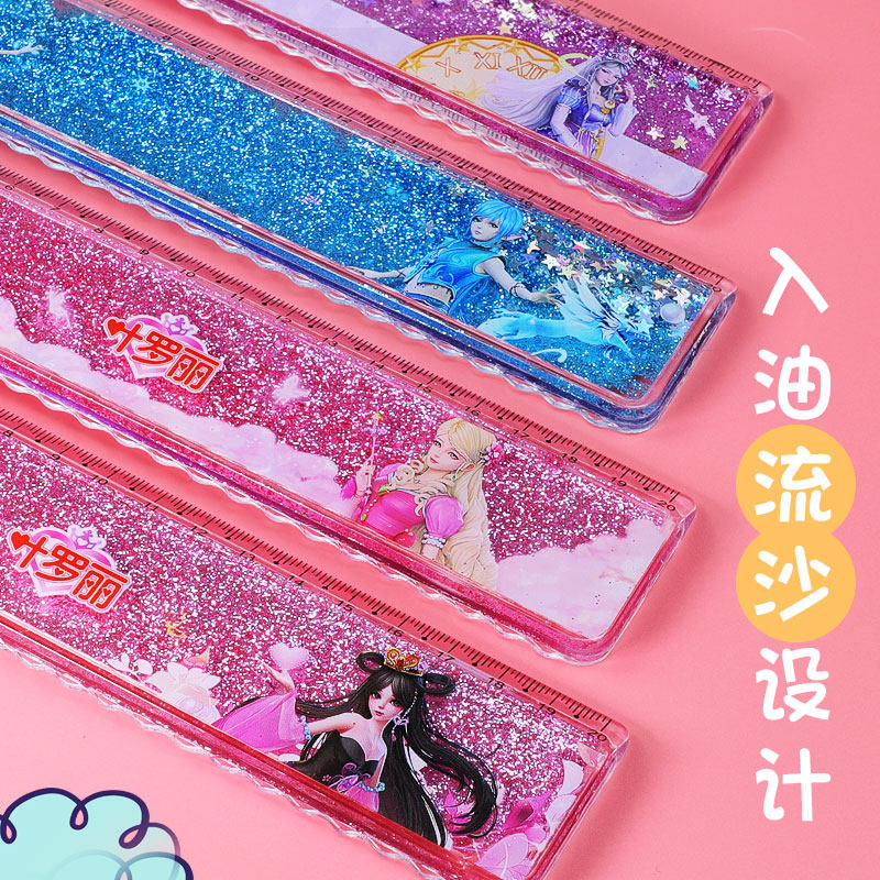 Leaf Roie Elf Dream Streaming Sand Ruler Girl Hearts Princess Primary School Students With Wave Line Creativity Cute Suit Student Stationery Ruler Multifunction Card Inletting Oil Dream 20cm Graduated Scale