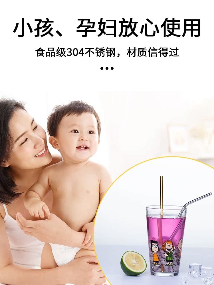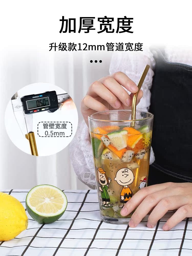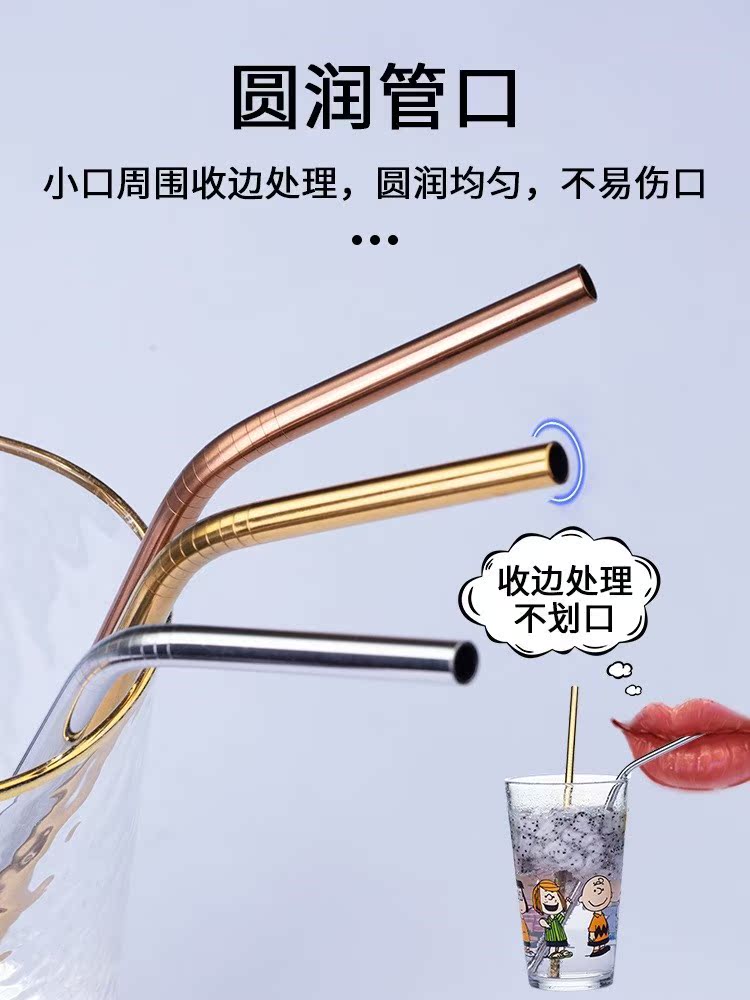Net red 304 stainless steel bubble tea straw non-disposable coarse environmental protection portable elbow metal beverage straw