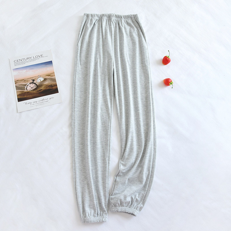 Qiu Pure Cotton Closing Long Pants-Lotus Root Powder Qiu Pure Cotton Closing Long Pants-Tender Powder Qiu Pure Cotton Closing Long Pants-Light Grey Qiu Pure Cotton Closing Long Pants-Hide Green