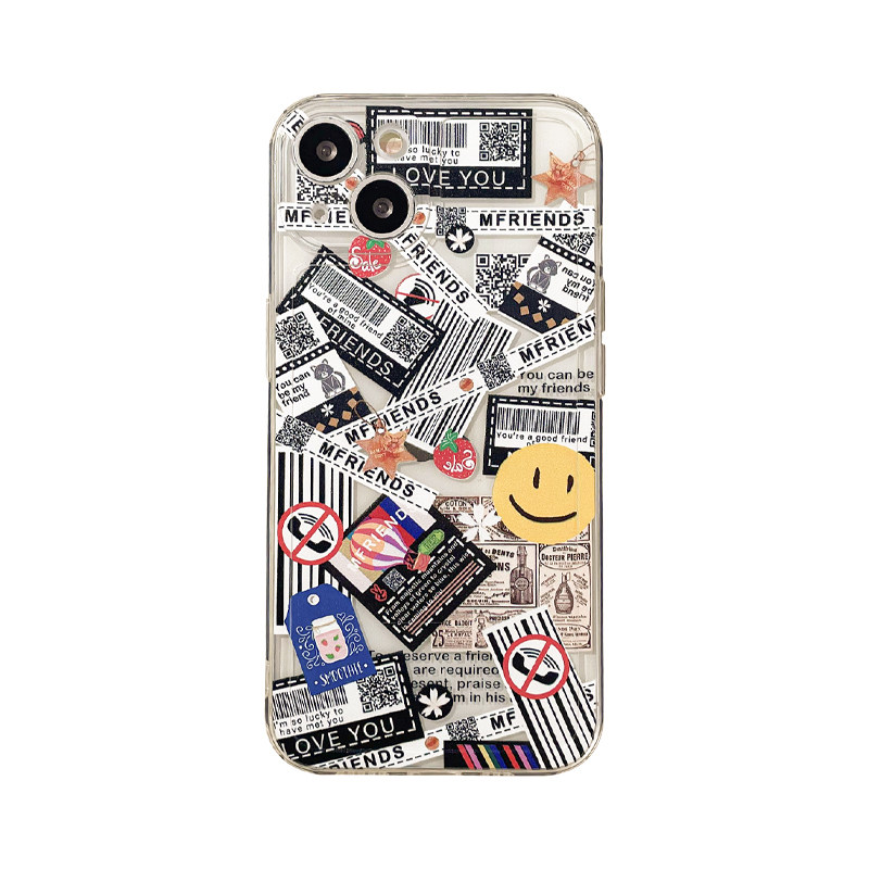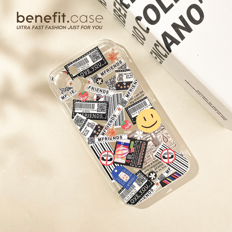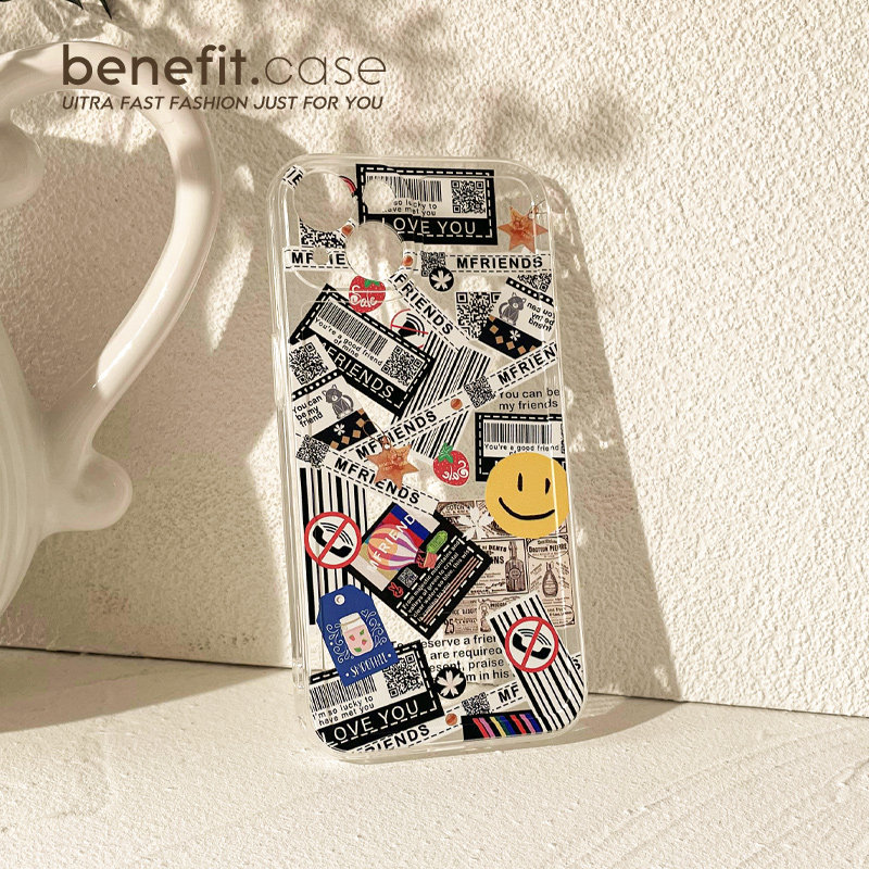 Benefit tide card graffiti smiling face labels apply Apple 13promax mobile phone protection shell cute iphone12mini soft silicone xsmax transparent xr Japan-ROK