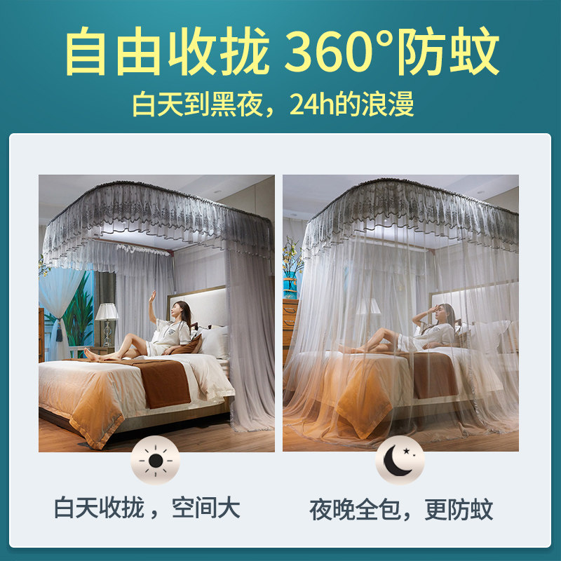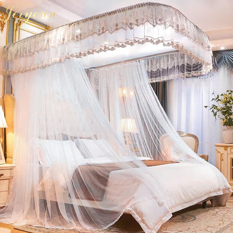 JERYOUN guide rail mosquito net household U-shaped track 2022 new thickened encryption princess landing free installation
