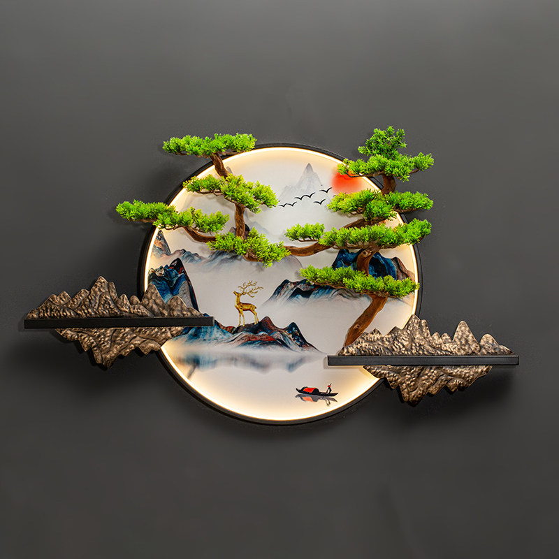 New Chinese Wall Wall Decoration With Light Entrance to the family Living Room Sofa background Pendant Tea Room Cubist Welcome Guest Pine Wall Decoration-Taobao