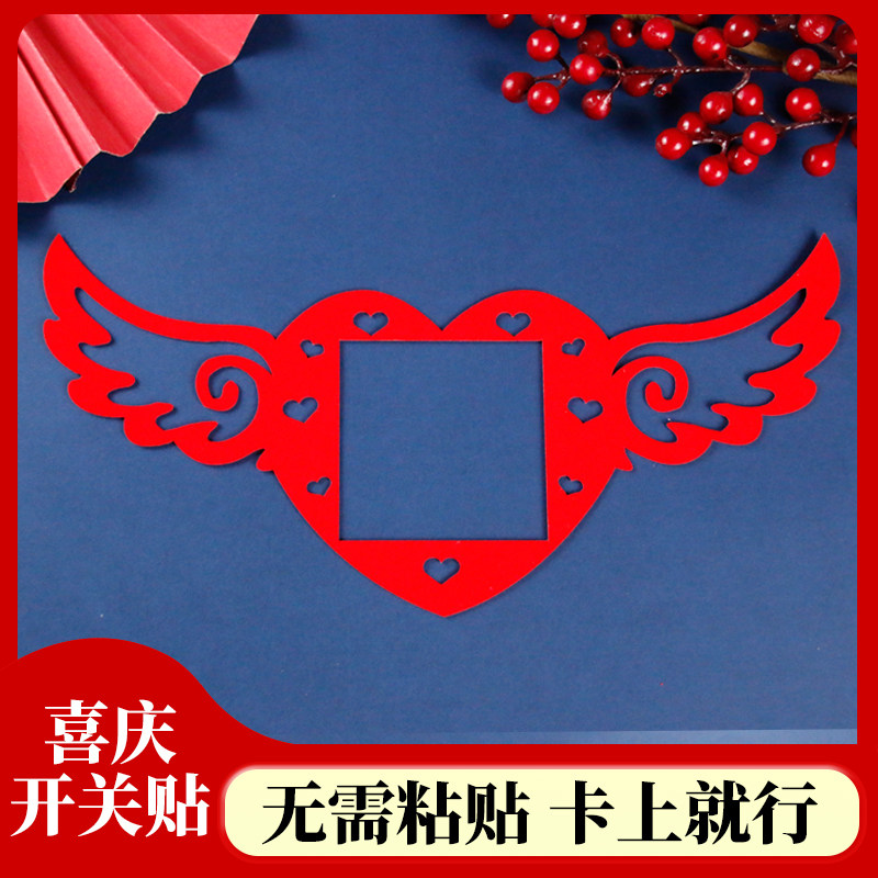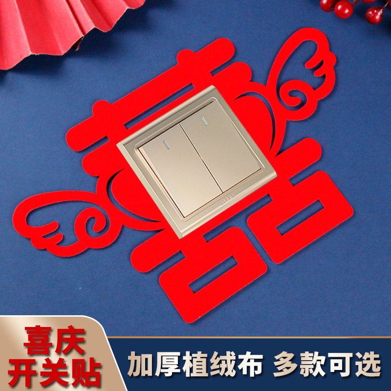 Wedding Celebration Supplies Switch Stickup Wall Patch Flocking Happy Character Creative Wedding House Decorative Mesh Red Socket Switch Protective Sheath Free From Sticking