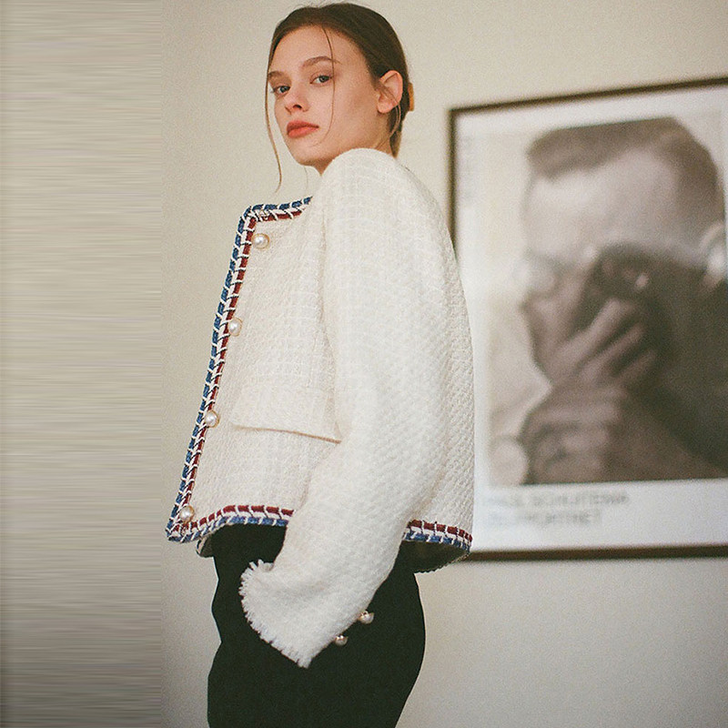 siyazu Korean short coat women 2022 new autumn retro tweed wool short style small fragrant wind coat women