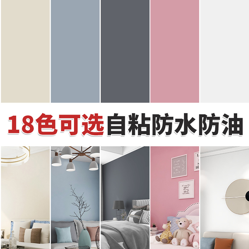 Pure Color Wallpaper Wallpaper Self-Glued Bedroom Background Wall Stickers Dorm Room Retrofit Waterproof Moisture Protection Washable Pvc Stickers
