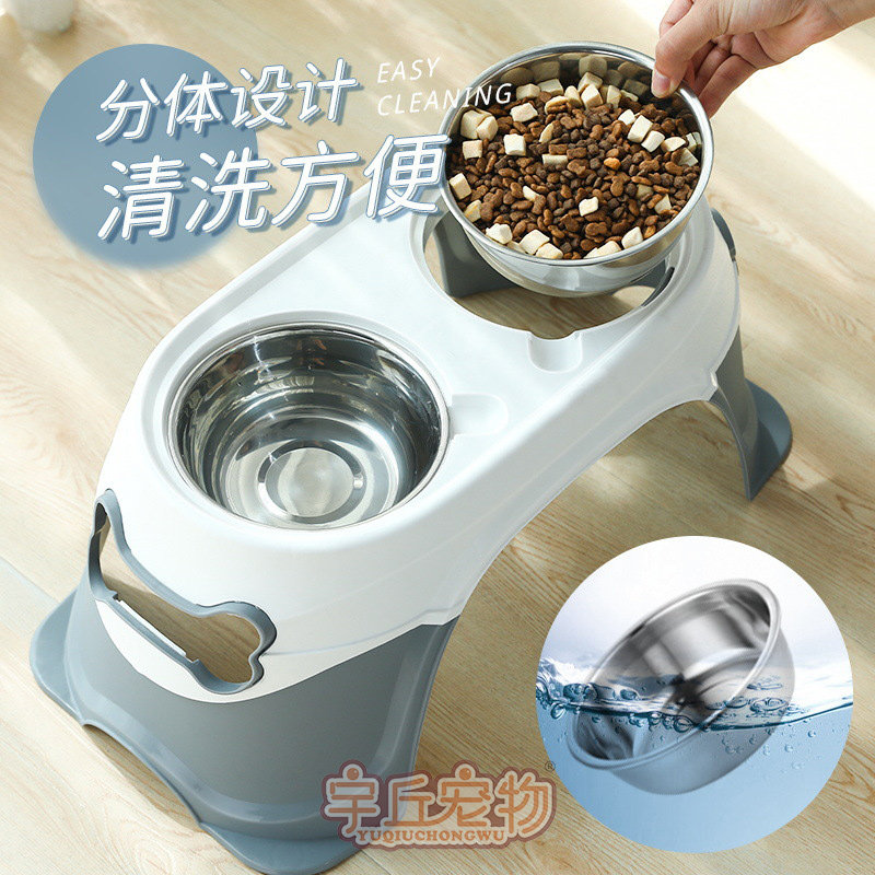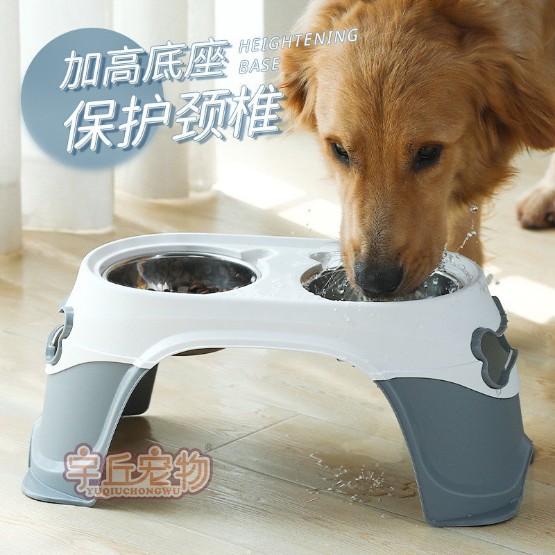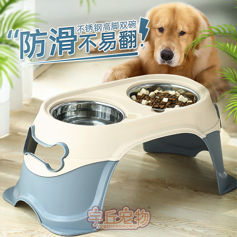 Border Shepherd Dog Border Shepherd Dog Special Food Basin Water Basin Dog Basin Dog Bowl Integrated Care Neck Double Bowl Stainless Steel Large Dog