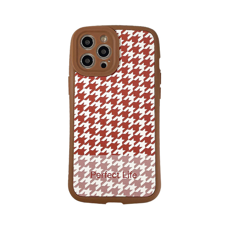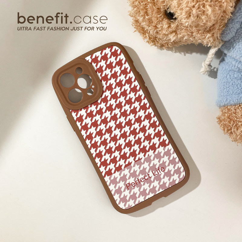 Benefit Korean Wind Brown Thousand Grid Apple 13 promax mobile phone protective shell retro iPhone 12mini literary and art xsmax minimal xr silicone gel 8p