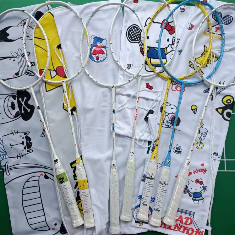 Girls' children beginnics badminton rackets single carbon fiber ultralight Snubi 5u High-pound cartoon badminton racket