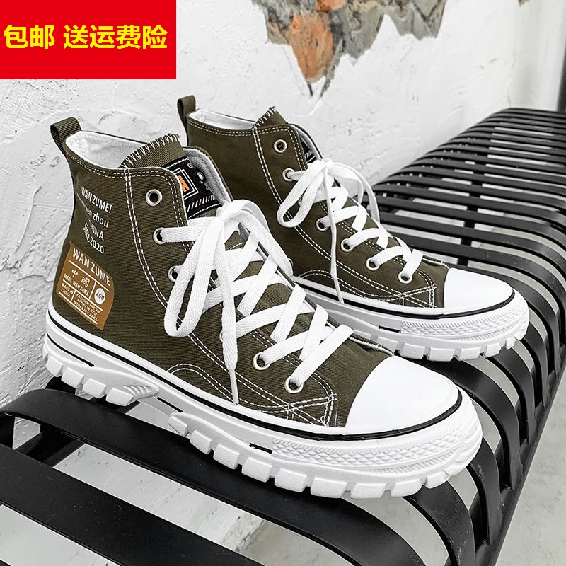 2022 new canvas shoes men's casual spring and autumn high tube flat bottom skid plate shoes men's high tube sports tide shoes men