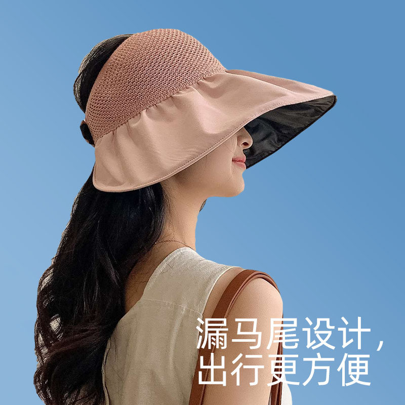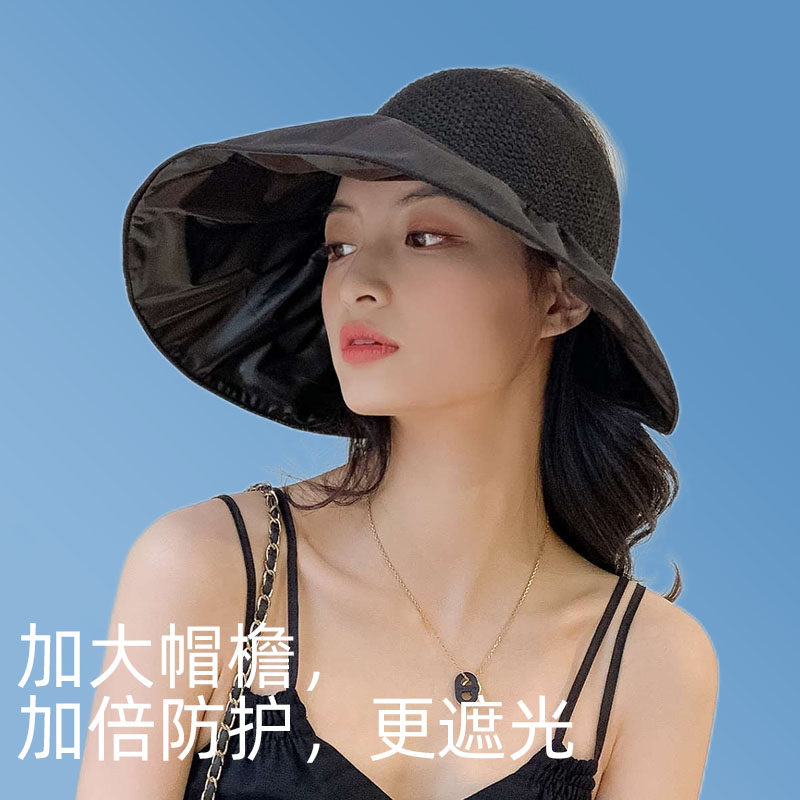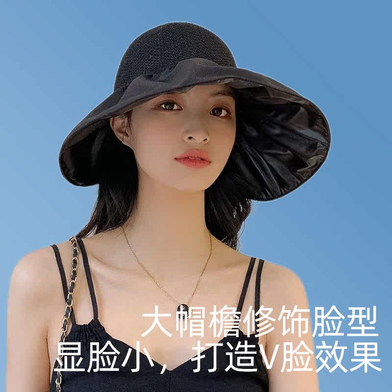 Black glue sunscreen hat female summer large brim anti-UV cycling outdoor sun hat fisherman hat foldable
