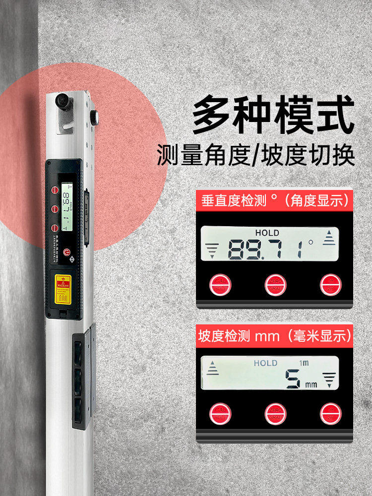 Intelligent digital display 2-meter ruler (levelness, verticality detection, flatness detection) easy reading