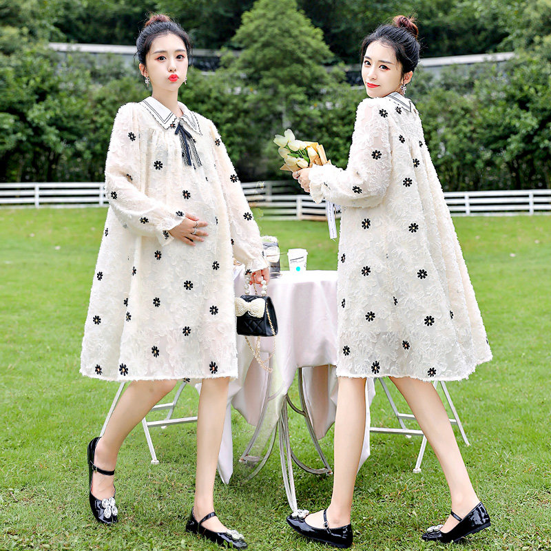 Pregnant women's autumn clothes, fashion models, high-end pregnant women's skirts, long-sleeved autumn maternity clothes, spring and autumn top clothes