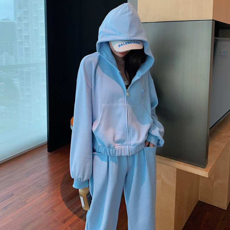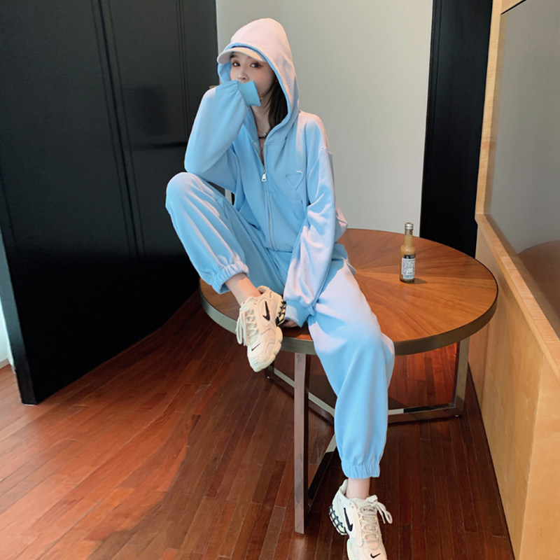 2022 Spring High Level Feel Port Wind Small Fresh Casual Sports Thick Cotton Suit Women Net Red Fried Street Goddess Van Two Sets