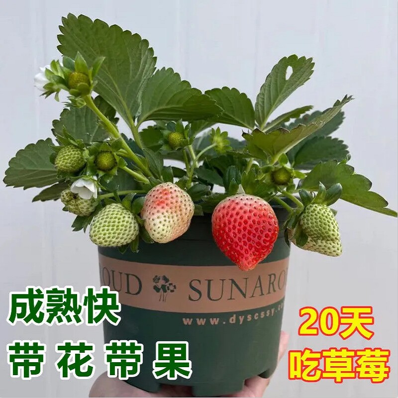 Strawberry Miao South cultivation with fruit with flower with soil shipment large plant Four Seasons Potted Balcony Cream of the year results