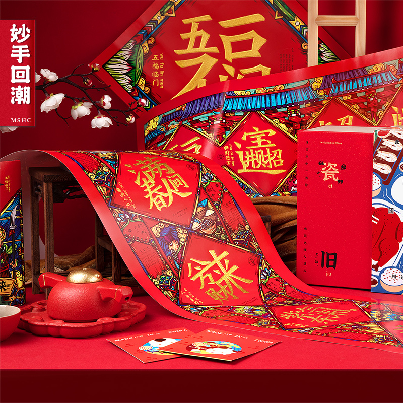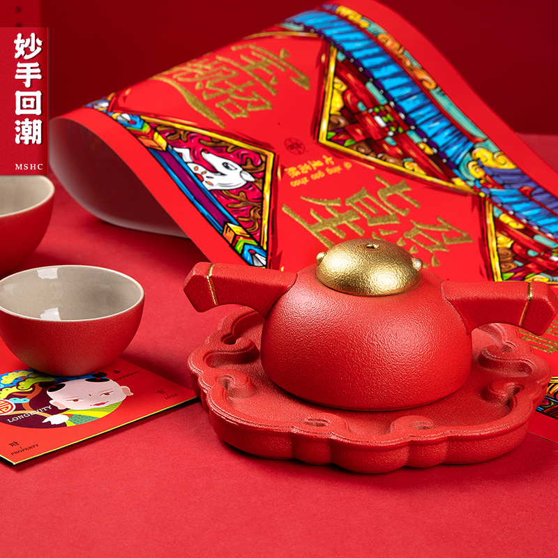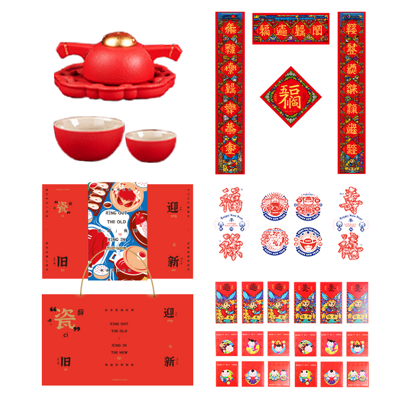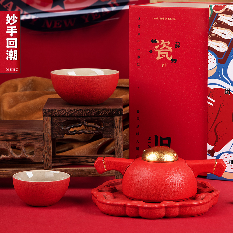 Wonderful hand resurgence kung fu tea set home complete set of gifts ceramic tea cups teapot high-end Spring Festival couplets gift box