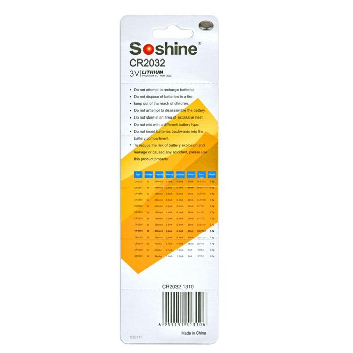Soshine CR2032 button Battery remote control onboard electronic scale 3V disposable no rechargeable battery